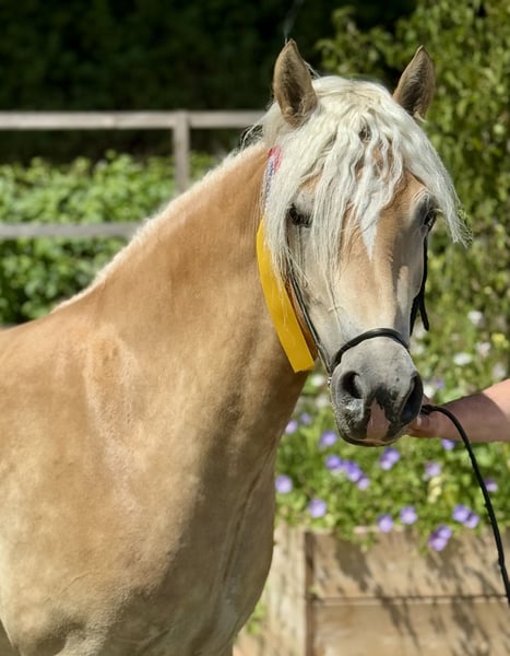 Lovely 3-year-old Haflinger mare with top lineage, for sale directly from the breeder to the best hands! The mare is in excellent health, friendly, and fearless. She also has three very good basic gaits, making her suitable for competition sports. With appropriate training, she will be versatile and can be used in disciplines such as dressage, working equitation, small jumps, trail riding, or as a leisure riding horse. Quintessa is a versatile mare that will bring much joy to her owner! If desired, we are happy to support you with further training in the form of training or riding lessons. For further questions or if you would like to meet the mare in person, please feel free to contact us anytime by phone or WhatsApp at 015202833968.