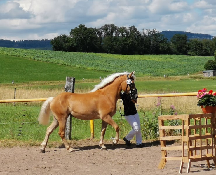 Sprzedajemy naszą klacz haflingerską Amirę z powodu braku miejsca - 4 lata - 149 cm - rekreacyjnie jeżdżona, z certyfikatem osiągnięć sportowych - w ciąży z licencjonowanym ogierem Steuermann (2025) - ojciec: SPH LH HB I Aber Hallo (Haflinger) - matka: S1 Dana (Haflinger) od LH Amerigo (Haflinger, Mistrz Świata)