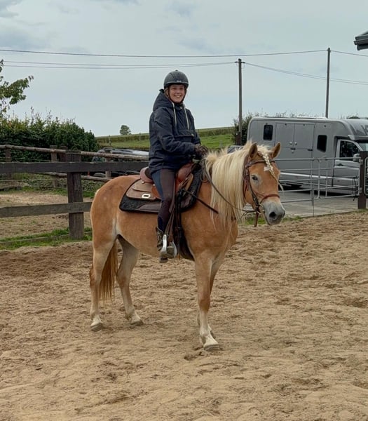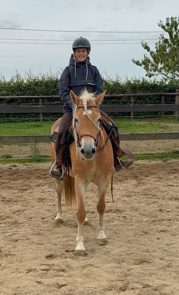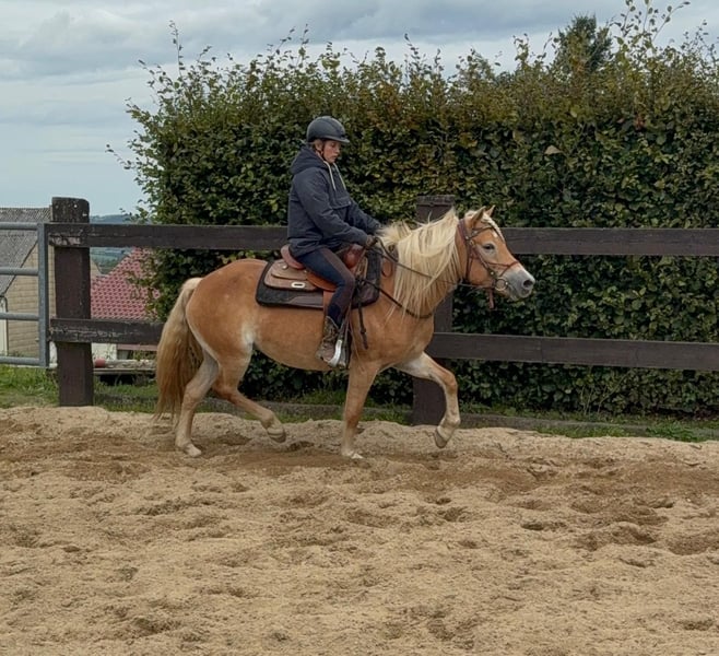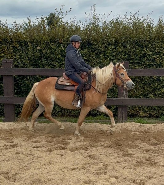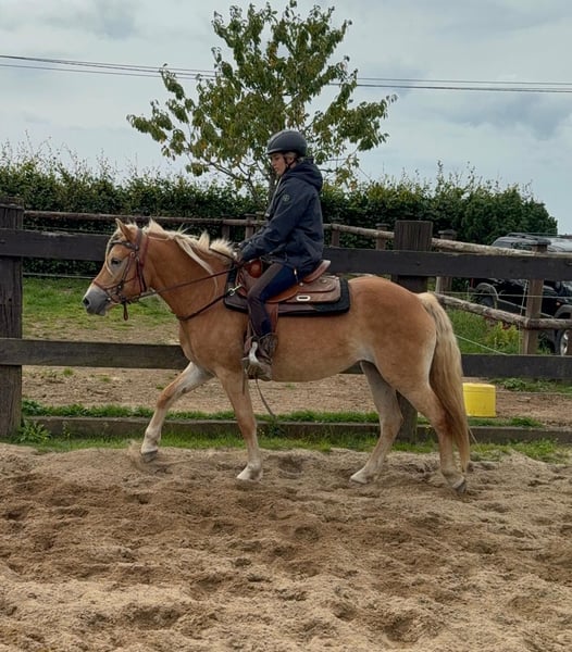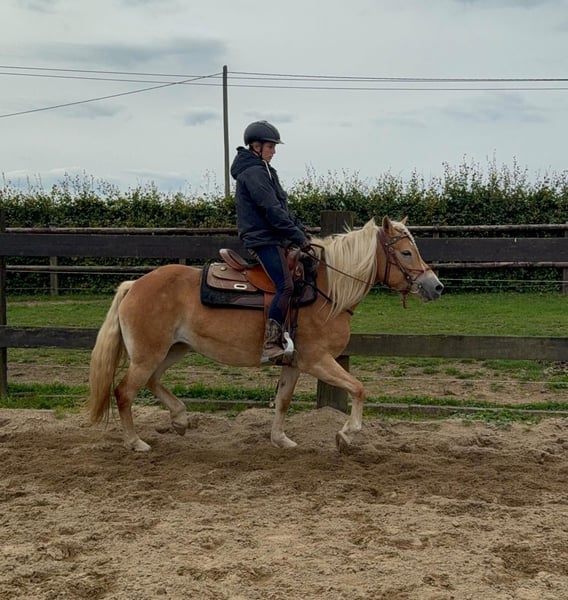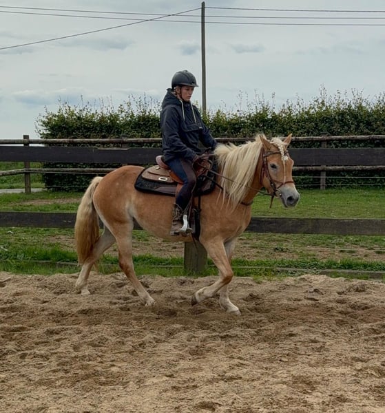 Zum Verkauf steht eine 4 Jahre alte Haflinger Stute, etwa 152cm groß. Sie ist brav im Umgang, hat ein tolles Wesen und ist angeritten. Sie läuft sehr brav mit Reiter in allen Gangarten und wird bei uns regelmäßig weiter gearbeitet. Sie zeigt keine Unarten, ist nicht schreckhaft und arbeitet gerne mit. Sie hat sehr gute Abstammung und wäre bestimmt auch interessant für die Zucht. Sie wird bei weiterer Ausbildung bestimmt ein tolles Pferd für die ganze Familie. Preis steigt bei weiterem Training. Krankheiten oder Allergien sind nicht bekannt. Eine AKU darf gerne gemacht werden. Gerne anrufen oder eine Nachricht senden 0157 36803742 Alle Angaben ohne Gewähr, Preisänderungen vorbehalten, Transport möglich, Onlinekauf möglich