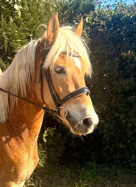 Super lieve & brave haflingermerrie Deze toffe dame is 5j en meet ong 147 +~ Ze is een echte allrounder; Ze heeft hiervoor lessen meegelopen. Ze kan een sprongetje. Kent basis in de piste. Gaat graag wandelen en is verkeersmak. Ze heeft een veulentje gegeven. Lief paard in omgang en met andere paarden. Staat bij ons 24/7 in de kudde. Zal lessen meelopen.