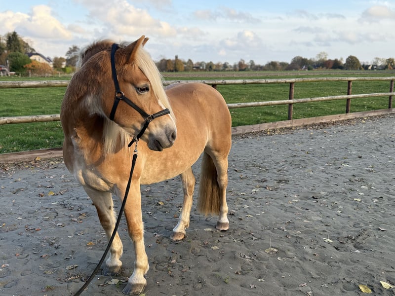 Wir verkaufen unsere typvolle, menschenbezogene Haflingerstute aus Zeitgründen in beste Hände. Sie wurde 4-jährig angeritten, anschließend nochmals auf die Koppel gestellt und wird seither schonend weitergearbeitet. Sie läuft sicher in allen drei Grundgangarten, zeigt dabei stets eine motivierte Arbeitseinstellung und möchte ihrem Menschen gefallen. Erfahrungen & Charakter: • Sicher mit Begleitpferd im Gelände • Gelassen im täglichen Hoftrubel: Kinder, Hund, Katze, Hühner, Traktor • Schmiede- und verladefromm, fährt auch allein ruhig im Anhänger • Kennt Offenstall sowie Box • Souverän und entspannt auf fremden Anlagen • Bisher immer gesund, kann problemlos auf die Weide Hinweis zum Ausbildungsstand: Aufgrund ihres Alters ist sie nicht für Anfänger geeignet. Sie benötigt einen sicheren, erfahrenen Reiter, der sie weiter fördert. Mit weiterer Ausbildung wird sie sicher auch eine tolle Partnerin für größere, fortgeschrittene Kinder. Diese Stute ist absolut artig im Umgang, klar im Kopf und bringt beste Voraussetzungen als Freizeitpferd oder für die weitere solide Ausbildung mit. Nur in verantwortungsvolle Hände abzugeben. Bei Interesse oder Fragen gerne melden – Besichtigung nach Absprache möglich. Keine Händler oder Reitschulen