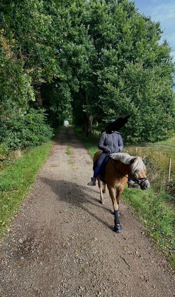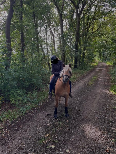 Geen noodgevalverkoop! Alleen reageren bij oprecht interesse! Met pijn in mijn hart zoek ik voor mijn 6-jarige Edelbluthaflinger merrie Halia een liefdevol thuis voor het leven. Ze is een zeer mensgerichte en vertrouwelijke merrie, vriendelijk in de dagelijkse omgang en geniet enorm van aandacht en genegenheid. Daarbij heeft ze het typische “pony-koppigheid”, je moet haar liefdevol maar consequent kunnen doorzetten. Met duidelijke leiding is ze altijd netjes en coöperatief. Wat opleiding betreft, bevindt ze zich op een goed E-niveau. Op de rijbaan toont ze zich eerder rustig en soms wat moeilijk te motiveren. In het buitenrijden bloeit ze echter op en toont ze veel plezier in beweging. Vooral bij grondwerk en longeren werkt ze gemotiveerd en alert mee. Ze is nooit ziek geweest bij mij, is verlading- en trailer-gefamiliariseerd, kent de tandarts, hoefsmid en alles wat bij het paardenleven hoort. Ze doet alles braaf en probleemloos mee. Voor haar wens ik een thuis waarin ze verzorgd en geliefd wordt, en niet alleen de sportieve training centraal staat. Ze is helaas niet geschikt voor jonge kinderen. Ik kan me haar echter goed voorstellen voor jongeren vanaf ongeveer 12 jaar. Het beste zou voor haar een box met regelmatig buitenruimte of een paddockbox zijn. Ze reageert helaas snel op teveel weidegang met snel gewichtstoename, dus dat moet goed in de gaten gehouden worden. Als je op zoek bent naar een loyale, liefdevolle vrijetijdspartner met karakter en haar een permanent warm thuis wilt bieden, hoor ik graag van je. Accessoires zoals dressuurzadel, hoofdstel, dekens enzovoort, kunnen tegen meerprijs worden aangeschaft. Voor recreatieve ruiters vraag ik €20 per proefrit. Deze worden verrekend bij aankoop.