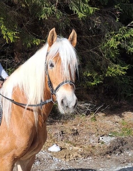 Pela sucht ein neues Zuhause. Pela ist eine elegante 6-jährige liebevolle Stute mit viel Bewegung. Sie eignet sich durch ihren ausgeglichenen Charakter als Freizeitpferd, ob zum Reiten oder Fahren. Sicherlich lässt sie sich auch für den Sport weiterentwickeln, wie es bereits einige aus dieser Linie bewiesen haben. Pela ist im Gelände angeritten und bereits zweispännig gefahren. Pela hat bereits zwei Fohlen geboren, die beide zur Aufzucht in unserem Stall im schönen Allgäu stehen. Alle unsere Pferde wachsen in der Herde bei uns im Betrieb auf, im Sommer auf einer großen Weide und im Winter im Stall mit großem Auslauf. Falls sie ein junges talentiertes Pferd suchen, mit dem sie oder ihre ganze Familie Spaß hat, dann ist Pela sicherlich eine Besichtigung wert. Wir sind ein Familienbetrieb der bereits in der 3. Generation seit 50 Jahren Haflinger züchtet. Bei uns finden sie auch Wallache oder Jährlinge, sowie 3-jährige Stuten, die im Frühjahr zur Vorstellung kommen. Unsere Stuten sind alle im Gelände geritten und gefahren, im Winter am Schlitten und im Sommer am Marathonwagen. Bei Interesse würden wir uns freuen, Ihnen einen liebevollen Haflinger vorzustellen.