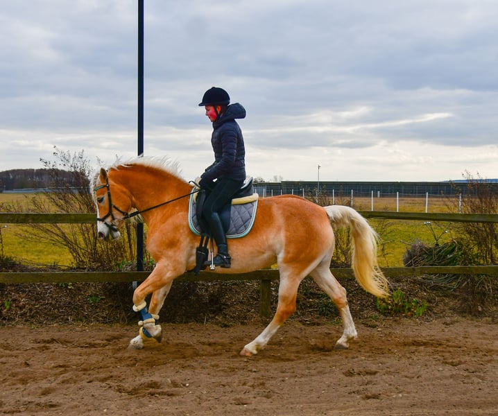 Zum Verkauf steht eine 5-jährige XXL Haflingerstute mit einem sensiblen Charakter. Sie präsentiert sich sowohl im täglichen Umgang als auch unter dem Sattel sehr rittig, sowohl in neuen Umgebungen als auch im Gelände. Seit Anfang des Jahres wird sie geritten und zeigt ebenfalls sehr viel Talent am Sprung. Sie ist aufgrund ihrer Temperamentes nix für Anfänger. Sie neigt in Stresssituationen zur Hysterie und braucht jemand der das dann mit viel Ruhe aussitzen kann.Eine Stute die gefallen will, aber jeden Tag Arbeit braucht. Sie hat bereits ein sehr typvolles Hengst Fohlen, welches sich modern und bewegungsstark präsentiert. Dies macht sie sowohl für die weitere sportliche Ausbildung als auch als zukünftige Zuchtstute interessant. Ein ganz besonderes Nachwuchspferd. Dabei ist sie ein echter Hingucker, typstark und mit viel Ausstrahlung. -Turnierpferd eingetragen -Stubuch Eintragung 7,4