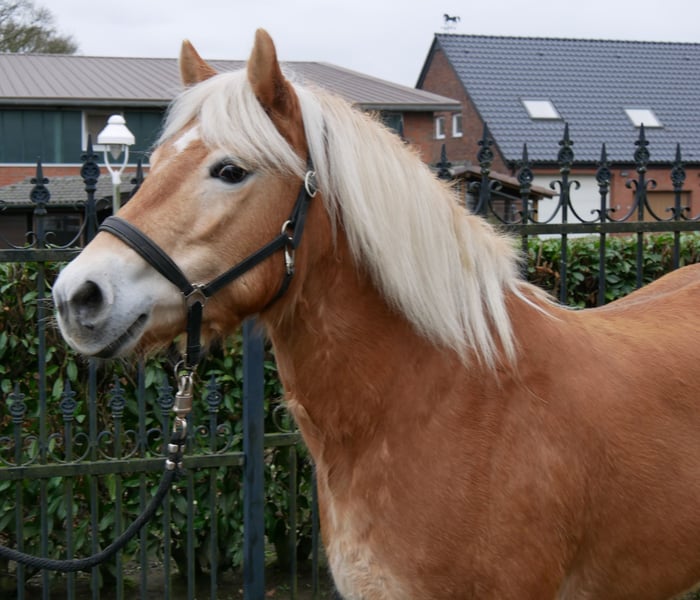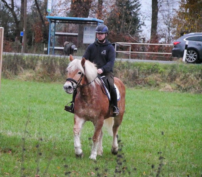 Name: Bella Alter: geb. 10.02.2017 Geschlecht: Stute Stockmaß: 142 cm Rasse: Haflinger Abstammung: Blitz van het Ravenhof von Bergquell x Stano von Stainz Zum Verkauf steht diese süße Haflinger Stute. Sie ist freizeitmäßig geritten kennt Halle, Platz und Gelände und lässt sich so schnell nicht aus der Ruhe bringen. Emma ist sehr brav im Umgang sowie unter dem Sattel und wurde auch schon von kleineren Kindern geritten. Sie ist neugierig , menschenbezogen und stand zuletzt in einem Offenstall zusammen mit einem Shetty. Sie deckt gut ab und würde sich auch für ein Mutter/ Tochter Gespann eignen. Alles weitere unter der Nummer 0176 62495567