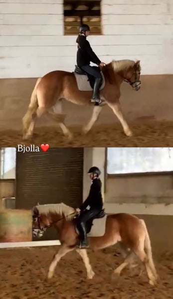 Bjolla ist eine 8 jährige Tiroler Haflingerstute aus der Zucht von Christian Mark. Sie ist 148 cm, im Tiroler Grundbuch I eingetragen. Ihr Vater ist Amerigo, ihre Mutter ist Braveheart von Straden aus einer Nabucco Mutter. Bjolla ist brav im Umgang, schmiede- und verladefromm. Bei uns läuft sie sehr gut barhuf, kann aber auch gerne ihre Hufschuhe mit ins neue Zuhause bringen. Sie ist sicher von Erwachsenen und Jugendlichen in Halle, Feld und Straßenverkehr geritten. Bei der Arbeit braucht sie eine faire aber klare Hilfengebung. Fühlt sie sich ungerecht behandelt, gibt sie Antwort. Für den Schulbetrieb oder unsicheren Reiter ist sie daher nicht geeignet, da sie Fehler nicht immer verzeiht. Eine persönliche Bindung zum Reiter ist wichtig für sie. Sie hat einen eigenen angepassten Westernsattel, der ebenfalls miterworben werden kann. Läuft aber auch gut mit einem englischen Sattel.