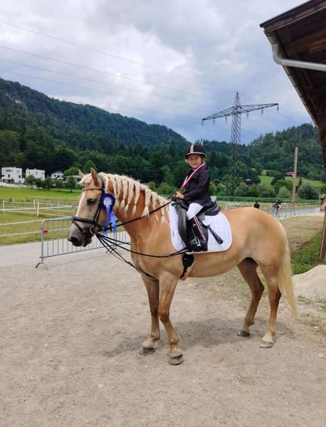 Due to personal circumstances, I unfortunately need to reduce my herd and am therefore offering my 8-year-old Haflinger mare, "Luechhof's Champagne," affectionately known as "Hafi." She competes confidently in dressage at solid A level and has been presented in show jumping competitions up to 95 cm. In both disciplines, she clearly still has significant potential for further development. Currently, she secured 3rd place at the Tyrolean Haflinger Championships in jumping. She is very well-behaved and patient with children and has already participated in lead-rein classes. A 6-year-old girl has also ridden her in walk and trot free, demonstrating her calm demeanor. Hafi has experience in single harness driving as well. She is truly an exceptionally well-behaved, motivated, and sensitive horse. With an experienced rider, she has enough go to enjoy riding and have fun, while with a less experienced or more nervous rider, she remains calm and cautious. She is, of course, shoe- and loading-safe. If you are genuinely interested, I would be happy to discuss further details over the phone. Test rides can be arranged by appointment. A fee of €50 is charged for this, which will be refunded upon purchase.