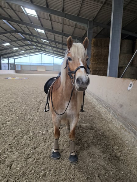 Zum Verkauf steht eine charmante Haflinger Stute, Jahrgang 2018, mit einem Stockmaß von ca. 1,51 m. Die Stute befindet sich aktuell noch in der Ausbildung, zeigt sich dabei jedoch stets motiviert und lernwillig. Im Galopp benötigt sie noch etwas Unterstützung, entwickelt sich aber kontinuierlich weiter. Sie ist eher von der flotteren Sorte, bleibt dabei jedoch jederzeit gut händelbar und angenehm im Umgang. Sowohl beim Schmied als auch beim Verladen zeigt sie sich brav und unkompliziert. Im Gelände ist sie zuverlässig – egal ob alleine oder in der Gruppe. Zudem hat sie bereits erste kleine Sprünge gemeistert und zeigt auch hier Potenzial. Insgesamt eine tolle Stute für ambitionierte Freizeitreiter oder zur weiteren Ausbildung. Bei Interesse freuen wir uns über eine Nachricht!