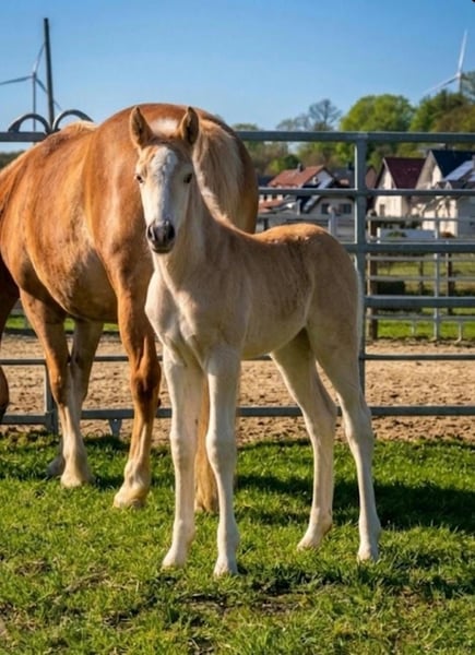 Zum Verkauf steht ein vielversprechendes, korrekt gebautes Stutfohlen aus einer hochwertigen und sportlich interessanten Anpaarung: - Vater: Winterball - Mutter: Dorina von Wonder Das Fohlen zeigt sich elegant, typvoll und bewegungsstark, mit klarer Linie und einem freundlichen, menschenbezogenen Charakter. Sie wächst artgerecht im Herdenverband auf und präsentiert sich gesund, neugierig und unkompliziert. - korrekt im Fundament - moderne, edle Aufmachung - sehr gute Grundgangarten - ideal für Zucht oder späteren Sport Preis 3.500 € inklusive Mehrwertsteuer https://www.instagram.com/pferdezucht_weritz?igsh=cHJ6anc3NHQ2aDlx&utm_source=ig_contact_invite Besichtigung und Reservierung nach Absprache möglich. Standort 33178 Borchen