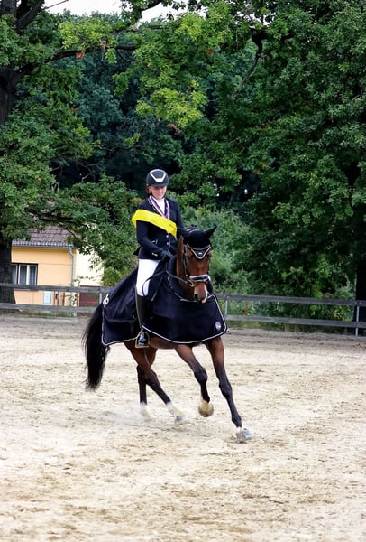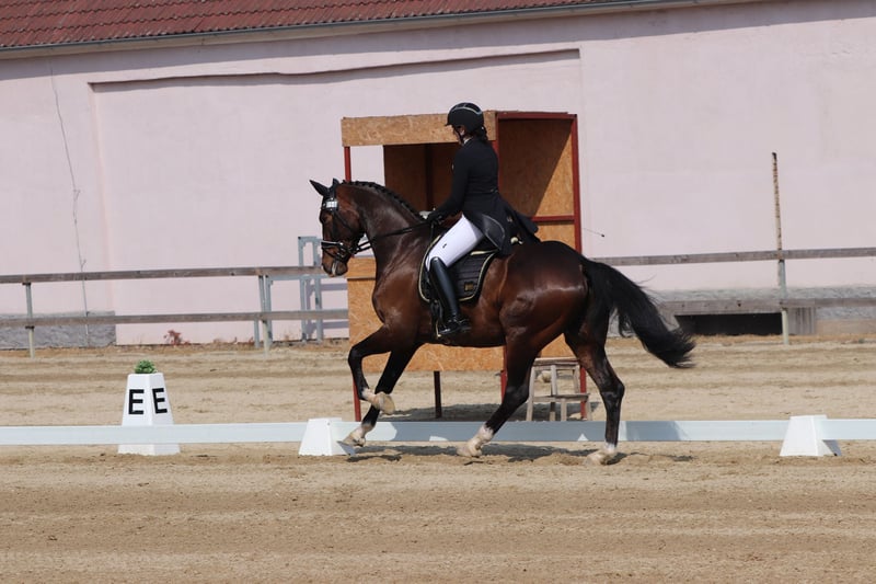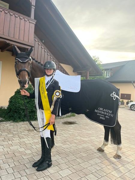 Dressage Schoolmaster for Children Ragnar Lothbrok (Krack C × Dream of Glory) is a 10-year-old Hanoverian gelding competing up to Medium level, with good quality in all three gaits and excellent rideability. Although standing 170 cm, he is sensitive, safe, and eager to please, making him a wonderful schoolmaster even for very small or young riders. With his owner, he was successfully produced from the very beginning up to Medium level. In 2025 he was loaned to a 14-year-old rider with little dressage experience, yet together they achieved excellent results: • 2nd place – National Amateur Championship (Preliminary, Children) • 1st place – Regional Championship of North Bohemia (Children) • 7th place – Czech Dressage Championship (Children Individuals) • 4th place – Czech Dressage Championship (Children Teams) Key Highlights: • No stable vices, easy to handle, clip, shoe, transport, etc. • Safe and reliable at home, at competitions, and out hacking. • Friendly in turnout – accustomed to paddock and pasture with other horses. • X-rays and a complete, up-to-date pre-purchase exam are available, confirming the same health status as in his first PPE at the age of 4. • Competition ready. Competition Career • 2019 – Winner of Czech Young Horses Championship Qualification (4-year-olds) with 85.6%, rider Jan Zamec • 2019–2023 – With rider Tereza Hrabáčová (purchased him as a junior rider in 2019) • 49 starts – 39 placings • 1st place – National Dressage Amateur Championship Zduchovice 2020, Preliminary, Juniors • Regional Championship South Bohemia: • 3rd place 2020, Juniors/Elementary • 1st place 2021, Juniors/Elementary • 2nd place 2023, U25/Medium • 2025 – With rider Anna Kukaňová (14 years old) • 18 starts – 14 placings • 2nd place – National Amateur Championship Zduchovice 2025, Preliminary, Children • 1st place – Regional Championship North Bohemia, Children • 7th place – Czech Dressage Championship 2025, Children Individuals • 4th place – Czech Dressage Championship 2025, Children Teams