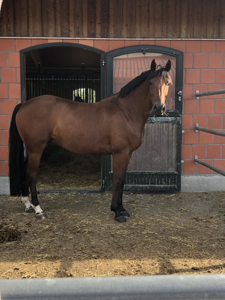 Feivi has been with me since he was 6 months old. I personally broke him and trained him up to S-level. He is a true buddy-type, equipped with three good gaits, very affectionate and cuddly, and a pleasure to ride. He has already won medium-level dressage tests at competitions and is always a reliable partner. He also enjoys and handles solo rides very well. Since I no longer have enough time for him, I am sadly looking for a new 5-star home. I can easily see him as a pony transition horse and schoolmaster. The main thing is finding a family that will appreciate him just as much as we do. As he is not very tall, a larger rider might not be the best fit. Due to an existing health issue, he is offered at a significantly reduced price. Quality over price is my motto. Videos and further information are available upon request.