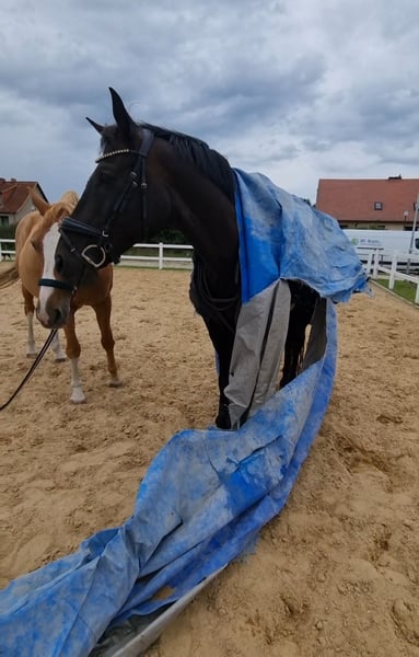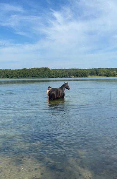 Z ciężkim sercem szukam dla mojego 10-letniego wałacha Hannovera nowego domu w stajni otwartej, z dostępem do siana 24/7. Jest absolutnie spokojny, odważny i łagodny jako lider stada – można go porównać do „labradora w rozmiarze konia”. Brak mu złych nawyków, jest bardzo przywiązany do ludzi i wprost cudowny w obsłudze. Radzi sobie zarówno sam, jak i w grupie na wycieczkach terenowych. Prace u kowala, wizyty u weterynarza czy holowanie nie stanowią dla niego problemu. Do klasy A w ujeżdżeniu był wytrenowany, jednak ze względu na stan zdrowia obecnie jest w stanie pracować jedynie w chodzie i szuka miejsca jako koniowaty towarzysz, który jest w stanie podtrzymać jazdę w ograniczonym zakresie. Nie nadaje się już do startów w konkursach ani do pracy w ujeżdżeniu na placu! Zdrowie: - Regularnie szczepiony (w tym przeciwko wirusowi Zachodniego Nilu), odrobaczany - Regularnie dwa razy w roku odwiedzany przez osteopatę - Zęby poddawane co najmniej raz w roku Kwasica kopytowa dwa lata temu, spowodowana lekami – wyleczona, dostępne zdjęcia rentgenowskie, nadal wymaga podkowy, codziennie na kilka godzin na pastwisku. Operacja kolana – bez laski, nie kuleje. Niewydolność zastawki mitralnej – bez leków, bez powiększonego serca, wystarczy coroczna kontrola. W chodzie jest w stanie pracować warunkowo, w truchcie i galopie obecnie nie! Ze względu na młody wiek, nie wyklucza się, że w przyszłości będzie mógł znowu spokojnie jeździć w terenie we wszystkich chodach. Życzę mu kochającego domu, który zapewni mu spokój i dużo czułości. Priorytet ma miejsce, nie cena! W razie pytań chętnie służę dodatkowymi informacjami.