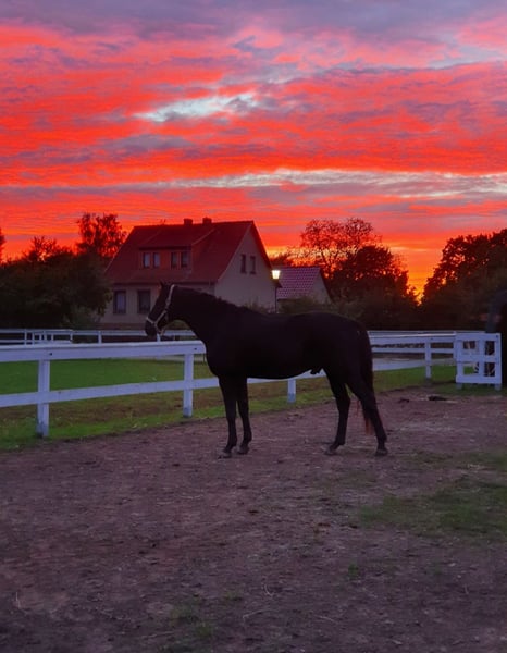 With a heavy heart, I am seeking a new home for my 10-year-old Hanoverian gelding in an open stable with 24/7 hay access. He is absolutely uncomplicated, fearless, and a gentle herd leader—a “Labrador in horse size.” He has no bad habits, is very people-oriented, and a true sweetheart to handle. He can go alone or in a group into the terrain. Farrier, veterinarian, or trailering are no problem. He was trained up to elementary level in dressage but is currently only able to work in walk due to health reasons and is therefore looking for a home as a lightly ridden companion horse. No longer suitable for competitive sport or dressage work in the arena! Health: - Regularly vaccinated (including West Nile), dewormed - Visited osteopath twice a year - Teeth cleaned at least once a year He had laminitis two years ago due to medication—fully recovered, X-rays available, still needs shoes, and stands on grass for several hours daily. Knee operated—lame-free. Mitral valve insufficiency—no medication needed, no enlarged heart, annual check-ups are sufficient. He is conditionally suitable for walk only; trot and canter are currently not possible. Due to his young age, it is not excluded that he may be able to be ridden comfortably in all gaits in the terrain again at some point. I wish for a loving home that offers him peace and plenty of attention. Priority goes to place, not price! Please feel free to contact me with any questions.