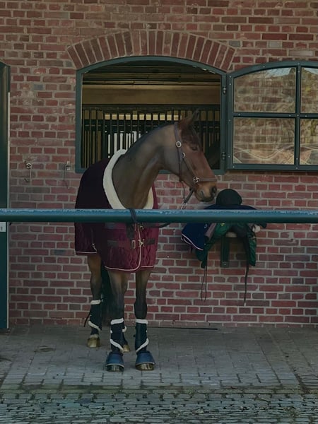 "Bosanova" gehört seit 5 Jahren zu unserer Familie und nun suchen wir auf diesem Weg eine tolle neue Familie für Ihn. Er hat unserer Tochter den Einstieg in den Turniersport ermöglicht und sie konnten viele Siege und Platzierungen in der Klasse A erreichen. Auch in der Klasse L konnten die beiden sich schon platzieren. Er zeigt sich auf dem Turnier sehr zuverlässig, zum Beispiel hat er mit unsere Tochter in Aachen beim "Salut Festival" am Quadrillien Championat teilgenommen. Aufgrund seiner Größe würden wir ihn nicht als reines Einsteigerpferd beschreiben. Jedoch ist er auch für Kinder und Jugendliche gut zu bedienen wenn die Unterstützung von einem Trainer/Bereiter gewährleistet ist. Wir können uns Bosanova als tolles Umsteigerpferd für ambitionierte Jugendliche oder Erwachsene mit etwas Reiterfahrung vorstellen. Er kennt täglichen Weidegang und ist dort verträglich mit anderen Pferden. Im Umgang, also beim putzen, verladen, führen, longieren ist er ebenfalls unkompliziert. Bosanova wurde regelmäßig beim Hufschmied, Zahnarzt und Physiotherapeuten vorgestellt. Selbstverständlich hat er auch alle Impfungen die für den Start auf Turnieren vorgeschrieben sind. Röntgenbilder von Anfang '22 liegen ohne Befund vor. Weitere Videos können gerne nach erster Kontaktaufnahme per WhatsApp oder telefonisch versendet werden. 01575 3574501