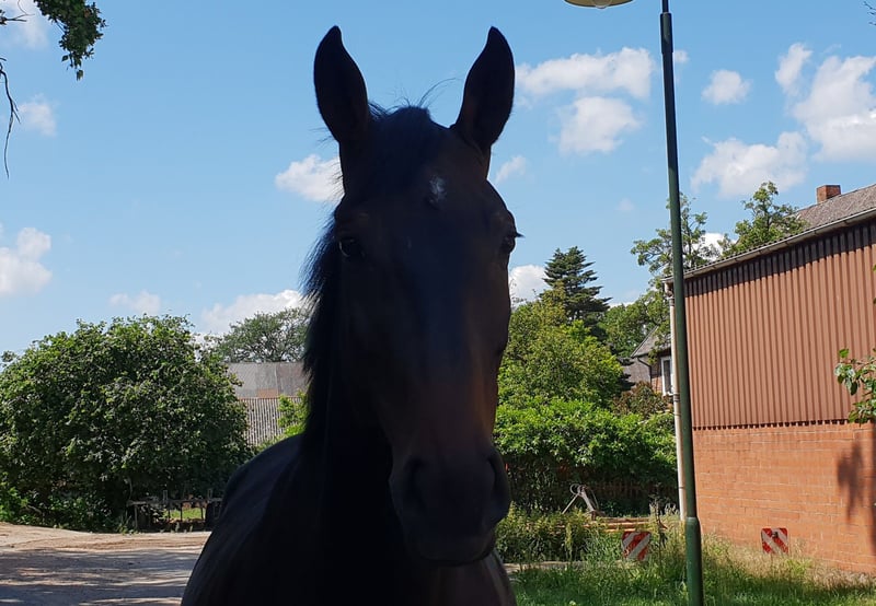 Nuestro juguetón y trabajador Darth Vader busca una nueva tarea después de una pausa de varios años debido a circunstancias personales. Conoce el paddock, el campo y el terreno. Con una altura de 1,78 m, es un caballo imponente, pero en su interior alberga un gran corazón y siempre quiere agradar. En su manejo, a veces todavía puede ser algo impetuoso, pero también es cariñoso, curioso y muy sociable con las personas. Bajo la silla, siempre muestra motivación y buen impulso. Debido a su tamaño, constitución y estado actual de entrenamiento, no es un caballo para jinetes principiantes. Buscamos a alguien que pueda adoptarlo o una participación en la equitación o cuidado. Por favor, absténganse de ofertas de intercambio o compra sin un encuentro personal previo.