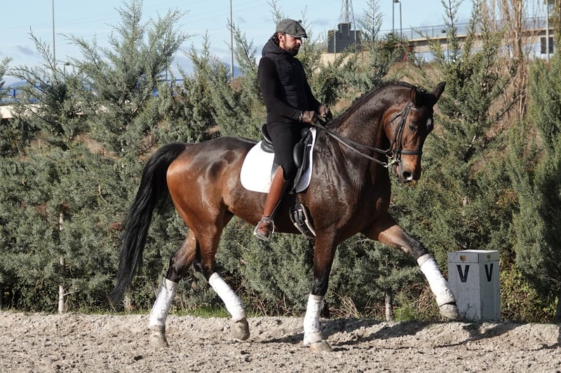 D'JIGOLO DE LA GESSE - Your Teacher to Grand Prix An 11-year-old Hanoverian gelding who already knows the way. 180cm of pure German elegance combined with real Grand Prix movements. WHY D'JIGOLO IS SPECIAL: This isn't a horse of promises - he's a horse of facts. D'Jigolo already has the movements: clean one-tempi changes, established piaffe you could show tomorrow, and passage that floats. At 11 years old, he's at that perfect moment: young enough for years of competition ahead, experienced enough to show you the way. YOUR EXPERIENCE WITH D'JIGOLO: This is an honest horse. He'll tell you exactly what you did right and what you didn't. He doesn't forgive mistakes - but that's exactly what makes you a better rider. Perfect for: ✓ Young Riders wanting to learn real Grand Prix ✓ Experienced riders ready for the next level ✓ Those who value a demanding but fair teacher ✓ Serious amateurs with solid technical foundation ✓ Professionals seeking reliable schoolmaster Not for beginners. For riders ready to work and improve. CURRENT LEVEL (Near Grand Prix): - One-tempi changes - established - Two-tempi changes - clean - Piaffe under saddle established - 15+ quality steps - Passage established - clear cadence - Piaffe-passage transitions - fluid and controlled - Canter pirouettes - in development He has 90% of Grand Prix already in his body. The other 10% you build together. TEMPERAMENT - HONEST AND CLEAR: "He's demanding but never unfair" - that's the best description. Not the horse that forgives your loose leg or inconsistent hand. But he's not nervous or complicated either. He's clear: if you ask correctly, he gives it. If not, he says "try again". This kind of honesty is gold for riders who truly want to learn FEI. YOUR PERSONAL TEACHER: Imagine having a teacher who: - Already knows all Grand Prix exercises - Shows you exactly how they feel when correct - Doesn't let you cheat with half-measures - Is patient when you try correctly - Pushes you to be more precise every day That's D'Jigolo. A schoolmaster in the true sense of the word. HEALTH & DOCUMENTATION: ✓ PIRO FREE (Piroplasmosis test negative) ✓ Complete veterinary checks ✓ Sound and healthy ✓ X-rays available 180cm (17.3hh) - Hanoverian - Bay READY TO TEACH YOU: D'Jigolo doesn't need more training - he trains you. You can ride him tomorrow and start learning. Every session is a masterclass if you're willing to listen to what he tells you. The question isn't if he can take you to Grand Prix - the question is: are you ready for the journey?