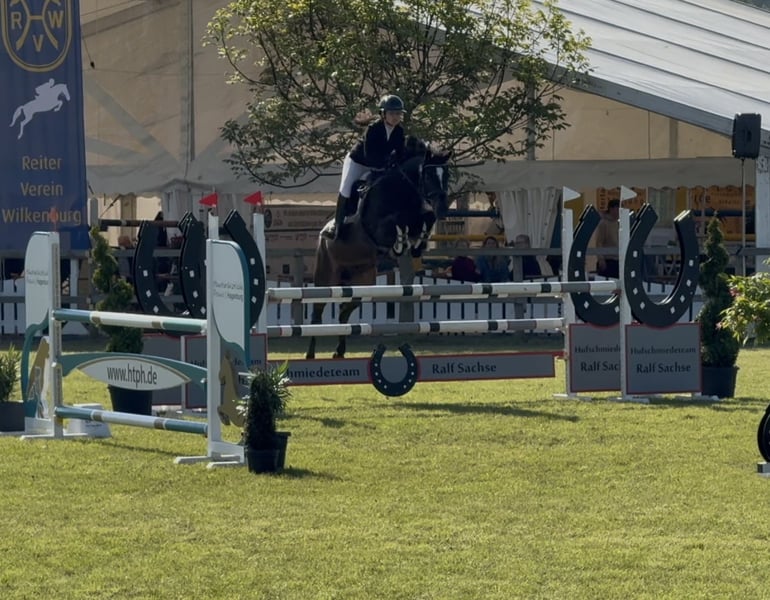 Ich inseriere hier einen 12 jährigen Hannoveraner Wallach vom Count Grannus. Er wurde mit 7 1/2 angefangen gearbeitet zu werden dementsprechend sein Ausbildungsstand. Von einem 14 jährigen Mädchen ( mit Trainer) ausgebildet und Turnier geritten. Nachweisbare Siege in E & A Springen. Im Jahr 2024 sprang er seine ersten L Springen. Daraufhin im Jahr 2025 die erste L Platzierung. Im Training springt er die ersten Sprünge in die nächst höhere Klasse. Canti bringt viel Einstellungsvermögen, Ehrgeiz und Lernbereitschaft mit. Leider wurde er als Jungpferd allein in einer Box gehalten während andere Pferde draußen standen. Diese Situation löste in ihm aus, dass er in engeren Räumen nicht allein sein kann. So ist es zwingend für ihn bei anderen Pferden zu stehen und/ oder diese in seiner Reichweite zu haben. In einer Box allein neben anderen Pferden ist dies kein Problem. Zum Anhänger fahren braucht er auch immer ein begleitendes Pferd, genau so wie in kleineren Hallen oder Stallgassen. Hufschmied fromm. Bei Interesse schreiben Sie mir gerne!