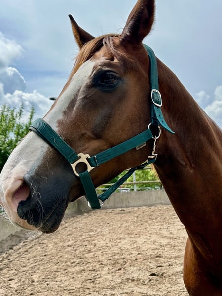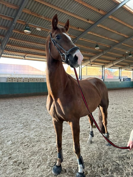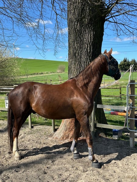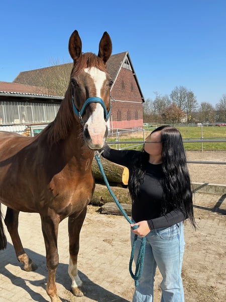 Eine passende Verkaufsanzeige für unseren Wallach Bobo zu verfassen, fällt mir absolut nicht leicht, ich versuche aber einfach mal die Situation bestmöglich darzustellen. Zunächst ein paar Daten: Bobo ist ein bildhübscher Dunkelfuchs, der im Jahr 2014 geboren wurde. Er stammt von Bodyguard und First Smile (einer Fidermarkstute) ab. Sein Stockmaß liegt bei 1,74 m. Aufgrund einer leichten Fehlstellung in den Vorderbeinen ist er vorne beschlagen und wurde/wird regelmäßig dem Schmied vorgestellt. Ansonsten ist er gesund und voll reitbar. Er wurde regelmäßig entwurmt und geimpft. Dressurmäßig ist er aktuell auf A-Niveau ausgebildet. Er verfügt über drei sehr schöne GGA und scheint durchaus Potential für mehr zu haben. Das Springen scheint ihm zu liegen und auch Spaß zu machen, so wie wir es im Freispringen beobachten konnten. Hier wurde er aber bisher scheinbar nicht weiter gefördert. Kommen wir zu dem Teil, der mir schwerer fällt: Bobo lebt seit einem Jahr bei uns. Wir (wir sind ein Mutter-Tochter-Gespann) haben ihn als unser erstes, eigenes Pferd gekauft. Wir sind beide keine Anfänger, jedoch reiten wir auf unterschiedlichem Niveau, so dass die Voraussetzung war, dass er als gelassenes Freizeitpferd auch von schwächeren Reitern zu händeln ist. Dies wurde uns beim Kauf, zusammen mit einigen anderen Dingen zugesichert. Das Probereiten vor Ort verlief auch problemlos. Bei uns zu Hause mussten wir dann leider sehr schnell feststellen, dass das bei ihm aber tatsächlich nicht der Normalfall ist. Wie bereits o. g. ist er dressurmäßig auf A-Niveau ausgebildet. Da er jedoch unsicher ist, benötigt er einen absolut sicheren und erfahrenen Reiter, der das Fingerspitzengefühl besitzt, festzustellen, wann ihm eine Situation zu „gruselig“ ist. Kann man die Anzeichen nicht rechtzeitig deuten, zeigt er seine Unsicherheit unter Umständen dadurch, dass er losschießt. Steigen und Buckeln sind ihm jedoch fremd. Insgesamt ist festzustellen, dass Bobo ein relativ dünnes Nervenkostüm besitzt. Er lässt sich schnell verunsichern und braucht auch in diesen Situationen eine konsequente und erfahrene Hand, die ihm Sicherheit vermittelt. Dieser Situation sind wir reiterlich einfach nicht gewachsen und auch nicht in der Lage, ihm an dieser Stelle weiterzuhelfen. Er ist Menschen gegenüber sehr aufgeschlossen und freundlich. Er möchte dem Menschen nie etwas Böses und genießt es sehr, Aufmerksamkeit zu bekommen. Mit Pferden kommt er sehr gut zurecht, egal ob Stute oder Wallach. In der Herde ist er eher rangniedrig. Am wohlsten fühlt er sich jedoch, wenn seine Artgenossen in Sichtweite sind. Eigentlich wollten wir vom Kauf zurücktreten und haben daher ein langwieriges Beweisverfahren von fast einem Jahr geführt. Es liegt nun ein umfangreiches gerichtliches Gutachten vor, welches bei echtem Kaufinteresse natürlich auch eingesehen werden kann. Das Gutachten kam jedoch der Verkäuferin zugute, so dass wir uns nun nach einem guten zu Hause für Bobo umsehen müssen, da wir ihn definitiv nicht behalten möchten. Er wurde die letzten Monate bei uns nicht geritten, sondern ausschließlich vom Boden aus gearbeitet. Körperlich und konditionell ist er trotzdem in einem Zustand, der ein Probereiten ermöglichen würde. Natürlich muss er grundsätzlich wieder neu angeschoben werden. Aktuell wird er wieder an die Arbeit unterm Sattel gewöhnt und von einer jungen Frau geritten. Bobo ist ohrenscheu und hat aurales Plaque, was spezielles Halftern und Trensen erfordert. Probereiten nur bei entsprechender Qualifikation und auf eigene Gefahr. Bobo ist ausdrücklich kein Anfänger- und kein Kinderpferd!!! Trotz aller Umstände haben wir ihn natürlich ins Herz geschlossen, so dass wir uns ein liebevolles Für-immer-zu-Hause für ihn wünschen, damit er nicht zum Wanderpokal wird. Weitere Infos gerne auf Anfrage. Auch in einem persönlichen Gespräch oder Telefonat. Schriftlich kann man vieles einfach nicht so rüberbringen. Videos vorhanden. Platz vor Preis!