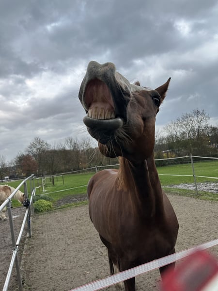Ecco una descrizione per l'annuncio di vendita del nostro cavallo Bobo: Innanzitutto, alcune informazioni: Bobo è un bellissimo baio scuro, nato nel 2014. È figlio di Bodyguard e First Smile (una fattrice di Fidermark). La sua altezza al garrese è di 1,74 m. A causa di una leggera deformità nelle zampe anteriori, è ferrato davanti e viene regolarmente controllato dal maniscalco. Per il resto, è sano e completamente montabile. È stato regolarmente sverminato e vaccinato. Attualmente, Bobo è addestrato a livello di Dressage A. Ha tre andature molto belle e sembra avere potenziale per di più. Il salto sembra piacergli e divertirlo, come abbiamo potuto osservare nel salto libero. Tuttavia, finora non è stato ulteriormente sviluppato in questo ambito. Passiamo alla parte più difficile per me: Bobo vive con noi da un anno. Noi (siamo un duo madre-figlia) lo abbiamo acquistato come il nostro primo cavallo. Entrambe non siamo principianti, ma montiamo a livelli diversi, quindi la condizione era che fosse un cavallo da tempo libero tranquillo, gestibile anche da cavalieri meno esperti. Questo ci è stato assicurato al momento dell'acquisto, insieme ad altre cose. La prova di montaggio in loco è andata senza problemi. Tuttavia, a casa ci siamo resi conto molto rapidamente che questo non è affatto il suo normale comportamento. Come già detto, è addestrato a livello di Dressage A. Tuttavia, essendo insicuro, ha bisogno di un cavaliere assolutamente sicuro ed esperto, che abbia il tatto per capire quando una situazione è "troppo spaventosa" per lui. Se non si interpretano i segnali in tempo, può mostrare la sua insicurezza scappando. Tuttavia, non ha mai mostrato segni di impennarsi o scalciare. In generale, si può dire che Bobo ha un sistema nervoso relativamente fragile. Si lascia facilmente intimidire e ha bisogno di una mano ferma e esperta che gli dia sicurezza anche in queste situazioni. Noi non siamo in grado di affrontare questa situazione e non possiamo aiutarlo in questo momento. È molto aperto e amichevole con le persone. Non ha mai intenzione di fare del male e ama ricevere attenzioni. Va molto d'accordo con gli altri cavalli, sia fattrici che stalloni. Nella gerarchia del gruppo è piuttosto sottomesso. Tuttavia, si sente più a suo agio quando i suoi simili sono in vista. In realtà, volevamo ritirare l'acquisto e abbiamo quindi avviato una lunga procedura legale durata quasi un anno. Ora abbiamo una perizia giudiziaria dettagliata, che può essere consultata in caso di reale interesse all'acquisto. Tuttavia, la perizia ha avvantaggiato la venditrice, quindi ora dobbiamo cercare una buona casa per Bobo, poiché non vogliamo assolutamente tenerlo. Negli ultimi mesi non è stato montato, ma è stato lavorato esclusivamente da terra. Fisicamente e in termini di condizione, è comunque in uno stato che permetterebbe una prova di montaggio. Naturalmente, deve essere riaddestrato. Bobo è sensibile alle orecchie e ha placca auricolare, il che richiede specifiche testiere e briglie. La prova di montaggio è consentita solo con la giusta qualifica e a proprio rischio. Bobo non è assolutamente un cavallo per principianti e non è adatto ai bambini!!! Nonostante tutte le circostanze, naturalmente ci siamo affezionati a lui, quindi desideriamo una casa amorevole e per sempre, affinché non diventi un trofeo vagante. Ulteriori informazioni sono disponibili su richiesta. Anche in una conversazione personale o telefonica. Per iscritto, molte cose non possono essere comunicate in modo efficace. Video disponibili. Posto prima del prezzo!