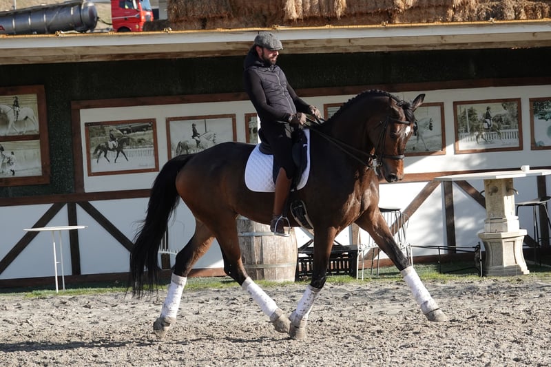 D'JIGOLO DE LA GESSE – Ihr Lehrer für den Grand Prix Ein 11-jähriger Hannoveraner Wallach, der den Weg bereits kennt. 180 cm pure deutsche Eleganz verbunden mit echten Grand-Prix-Bewegungen. WARUM D'JIGOLO BESONDERS IST: Dies ist kein Pferd voller Versprechen – sondern ein Pferd voller Fakten. D'Jigolo verfügt bereits über die Bewegungen: saubere Ein-Tempi-Wechsel, etabliertes Piaffe, das morgen vorgeführt werden könnte, und schwebenden Passage. Mit 11 Jahren befindet er sich im perfekten Moment: jung genug für viele Jahre im Turniersport, erfahren genug, um Ihnen den Weg zu zeigen. IHRE ERFAHRUNG MIT D'JIGOLO: Dies ist ein ehrliches Pferd. Es sagt Ihnen genau, was Sie richtig gemacht haben und was nicht. Es verzeiht keine Fehler – aber genau das macht Sie zu einem besseren Reiter. Perfekt für: ✓ Junge Reiter, die echtes Grand Prix lernen möchten ✓ Erfahrene Reiter, die bereit für die nächste Stufe sind ✓ Die einen anspruchsvollen, aber fairen Lehrer schätzen ✓ Ernsthafte Amateure mit solider Technikgrundlage ✓ Profis, die einen zuverlässigen Schulmeister suchen Nicht für Anfänger. Für Reiter, die bereit sind zu arbeiten und sich zu verbessern. AKTUELLER STAND (Nahe am Grand Prix): - Ein-Tempi-Wechsel – etabliert - Zwei-Tempi-Wechsel – sauber - Piaffe unter dem Sattel – 15+ hochwertige Schritte - Passage – klare Kadenz - Piaffe-Passage-Übergänge – flüssig und kontrolliert - Galopppirouetten – in Entwicklung Er hat bereits 90 % des Grand Prix in seinem Körper. Die restlichen 10 % bauen Sie gemeinsam auf. TEMPERAMENT – EHRLICH UND KLAR: „Er ist anspruchsvoll, aber niemals unfair“ – das ist die beste Beschreibung. Kein Pferd, das Ihre lockere Hand oder inkonsistente Haltung verzeiht. Aber auch nicht nervös oder kompliziert. Er ist klar: Wenn Sie richtig fragen, gibt er. Wenn nicht, sagt er „versuch es erneut“. Diese Art von Ehrlichkeit ist Gold wert für Reiter, die wirklich FEI lernen möchten. IHR PERSÖNLICHER LEHRER: Stellen Sie sich vor, einen Lehrer zu haben, der: - Bereits alle Grand-Prix-Übungen kennt - Ihnen genau zeigt, wie sie sich anfühlen, wenn sie richtig ausgeführt werden - Sie nicht mit Halbwissen durchkommen lässt - geduldig ist, wenn Sie es richtig versuchen - Sie täglich zu mehr Präzision antreibt Das ist D'Jigolo. Ein Schulmeister im wahrsten Sinne des Wortes. GESUNDHEIT & PAPIERLAGE: ✓ Piro frei (Piroplasmosetest negativ) ✓ Vollständige tierärztliche Untersuchungen ✓ Gesund und wohlauf ✓ Röntgenbilder vorhanden 180 cm (17,3 hh) – Hannoveraner – Fuchs BEREIT, IHN ZU UNTERRICHTEN: D'Jigolo braucht kein weiteres Training – er bildet Sie aus. Sie können ihn morgen reiten und mit dem Lernen beginnen. Jede Trainingseinheit ist eine Meisterklasse, wenn Sie bereit sind, auf das zu hören, was er Ihnen sagt. Die Frage ist nicht, ob er Sie zum Grand Prix bringen kann – sondern: Sind Sie bereit für die Reise?