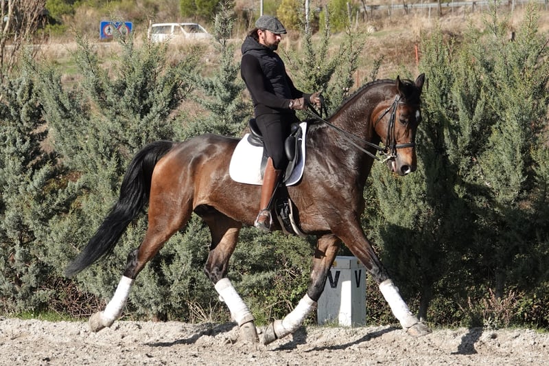 D'JIGOLO DE LA GESSE - Your Teacher to Grand Prix An 11-year-old Hanoverian gelding who already knows the way. 180cm of pure German elegance combined with real Grand Prix movements. WHY D'JIGOLO IS SPECIAL: This isn't a horse of promises - he's a horse of facts. D'Jigolo already has the movements: clean one-tempi changes, established piaffe you could show tomorrow, and passage that floats. At 11 years old, he's at that perfect moment: young enough for years of competition ahead, experienced enough to show you the way. YOUR EXPERIENCE WITH D'JIGOLO: This is an honest horse. He'll tell you exactly what you did right and what you didn't. He doesn't forgive mistakes - but that's exactly what makes you a better rider. Perfect for: ✓ Young Riders wanting to learn real Grand Prix ✓ Experienced riders ready for the next level ✓ Those who value a demanding but fair teacher ✓ Serious amateurs with solid technical foundation ✓ Professionals seeking reliable schoolmaster Not for beginners. For riders ready to work and improve. CURRENT LEVEL (Near Grand Prix): - One-tempi changes - established - Two-tempi changes - clean - Piaffe under saddle established - 15+ quality steps - Passage established - clear cadence - Piaffe-passage transitions - fluid and controlled - Canter pirouettes - in development He has 90% of Grand Prix already in his body. The other 10% you build together. TEMPERAMENT - HONEST AND CLEAR: "He's demanding but never unfair" - that's the best description. Not the horse that forgives your loose leg or inconsistent hand. But he's not nervous or complicated either. He's clear: if you ask correctly, he gives it. If not, he says "try again". This kind of honesty is gold for riders who truly want to learn FEI. YOUR PERSONAL TEACHER: Imagine having a teacher who: - Already knows all Grand Prix exercises - Shows you exactly how they feel when correct - Doesn't let you cheat with half-measures - Is patient when you try correctly - Pushes you to be more precise every day That's D'Jigolo. A schoolmaster in the true sense of the word. HEALTH & DOCUMENTATION: ✓ PIRO FREE (Piroplasmosis test negative) ✓ Complete veterinary checks ✓ Sound and healthy ✓ X-rays available 180cm (17.3hh) - Hanoverian - Bay READY TO TEACH YOU: D'Jigolo doesn't need more training - he trains you. You can ride him tomorrow and start learning. Every session is a masterclass if you're willing to listen to what he tells you. The question isn't if he can take you to Grand Prix - the question is: are you ready for the journey?