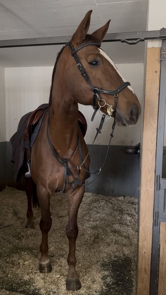 À vendre : un hongre de 13 ans, un cheval sincère et sensible, doté d'une grande motivation et d'une joie visible à travailler avec son cavalier. Il possède de belles allures et est un véritable plaisir à monter. Il est en bonne santé, en forme et robuste, avec de l’énergie et une envie de travailler. Il réagit finement aux aides, souhaite être monté de manière juste et correcte, et se montre alors obéissant, coopératif et très appliqué. Son côté très proche de l’homme est particulièrement appréciable : il aime être occupé, se tient volontiers devant la box en attendant de faire quelque chose avec son cavalier. En plus de l’équitation, il aime aussi le travail à pied ainsi que les exercices calmes et conscients, où la connexion entre le cheval et le cavalier est au centre de l’attention. Ce mode de travail lui correspond parfaitement. En saut d’obstacles, le hongre a déjà remporté des épreuves jusqu’à 1,20 m et est classé en 1,25 m. Il apporte de l’expérience et de la qualité en concours et peut continuer à évoluer en parcours – idéalement monté par un cavalier qui le monte avec douceur et respect. Il convient parfaitement à une personne expérimentée, appréciant un travail varié et une relation de partenariat avec le cheval. La vente est motivée par des changements personnels suite à une grossesse. Plus d’informations et vidéos sur demande.