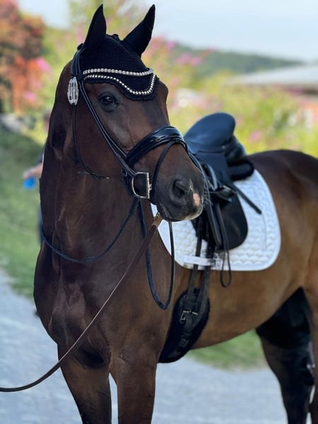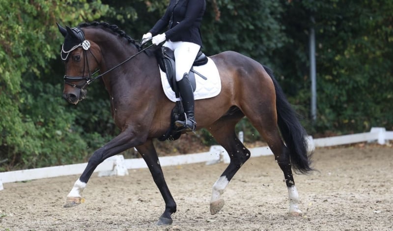 ‼️Urgently seeking a loving and caring home for our dream horse — only to quick decision-makers due to personal reasons‼️ With a heavy heart, we are offering our 14-year-old, stunning, dark bay, long-legged, and compact gelding for sale. He has competed successfully up to M** level and has been trained in S-Dressage. Changes of gait and piaffe are no problem; he is very easy to ride, sensitive to aids, and equipped with exceptional rideability. We have never had a horse that is so easy to ride. Lateral movements are his forte — a horse that simply brings joy! He is an absolute schoolmaster in every respect. In the 2025 season, he has placed at M level. Whether for dressage, training rides, or hacks — he is well-behaved, confident, and uncomplicated everywhere. Therefore, we could also imagine him suitable for an ambitious leisure rider looking for a beautiful schoolmaster. He has mild shivering, which does not affect his riding performance. Due to the circumstances, he is offered below his actual value — €22,000 negotiable. Highly negotiable for a very good home.