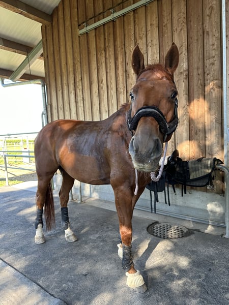Our beautiful dressage gelding from 2012 is for sale. "Baldassarini" comes from the renowned dressage breed Wieghaus-Vorwerk (Belstaff x Dancier). He was licensed as a 3-year-old and subsequently laid. Balu is a guarantee of fun in his daily work. He is very fine to ride in dressage, wants to please and has an absolutely ambitious sportsman's attitude. He is at a solid L/M level, but if the rider has the appropriate knowledge, he can also be called up for all M level lessons (potential for more is clearly available). Balu came to me from his first owner 2 1/2 years ago. However, I have to admit to myself that we have simply not become the team I would have wished for. The main reason for this is that Baloo wants to be challenged (in a varied way) every day. We don't have the infrastructure for this in winter. He is not a beginner's horse and needs a confident, ambitious rider. In everyday life and in training, he is the perfect training horse and absolutely lovable (can also be handled by children). He tends to become anxious in unfamiliar situations and requires clear, emphatic leadership and the safety of his rider. An AKU from 06/22 including x-rays are available. Balu has a sound that does not restrict him in any way. We inhale as a precaution, which we would also like to recommend to new owners. Balu goes out in pairs without any problems. Alone, he needs the safety of his rider. He has already been in cross-country training, knows how to be worked from the ground and also jumps well. He has no problems with walkers, treadmills, loading etc. For sale only to the best place and only if you like him. Easy to reach via Whats App, 0041 79 277 76 21.