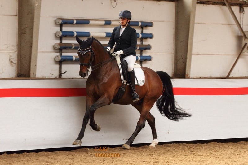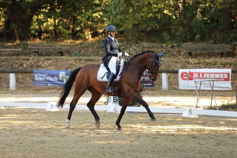Very well-behaved and uncomplicated 14-year-old gelding. Multiple winner in medium-level dressage competitions. Currently placed several times at S* level. Healthy, up-to-date veterinary examination with no findings. A very friendly horse that is approachable and affectionate towards people.