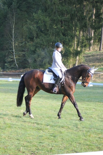 Zu verkaufen ist ein 15-jähriger Hannoveraner Wallach mit solider Ausbildung in Dressur und Springen. Er kennt Turniere, wird aktuell jedoch überwiegend als Freizeitpferd genutzt. Angenehm zu reiten und aufgrund seiner Ausbildung vielseitig einsetzbar. Charakter: Ein sehr lieber Wallach, eher der ruhigere Typ. Er arbeitet motiviert mit und ist im täglichen Umgang unkompliziert. Trotzdem hat er – wie jedes Pferd – seine kleinen Eigenheiten. Gelegentlich zeigt er sich etwas schreckhaft oder kann mal bocken, allerdings nicht regelmäßig und bei konsequenter Arbeit legt sich das schnell wieder. Ausbildung & Eignung: Dressur solide ausgebildet Springen sicher, kennt Parcours & Turnierbetrieb Für Freizeit und Allround geeignet Gelände: Er war bislang im Gelände vor allem in der Gruppe unterwegs und zeigt sich dort brav. Alleine fehlt ihm noch etwas Routine. Gesundheit: Kein Befund, dem Tierarzt und Schmied regelmäßig vorgestellt, aktuell fit und gepflegt. Sonstiges: Abgabe nur in gute Hände. Probereiten nach Absprache möglich.