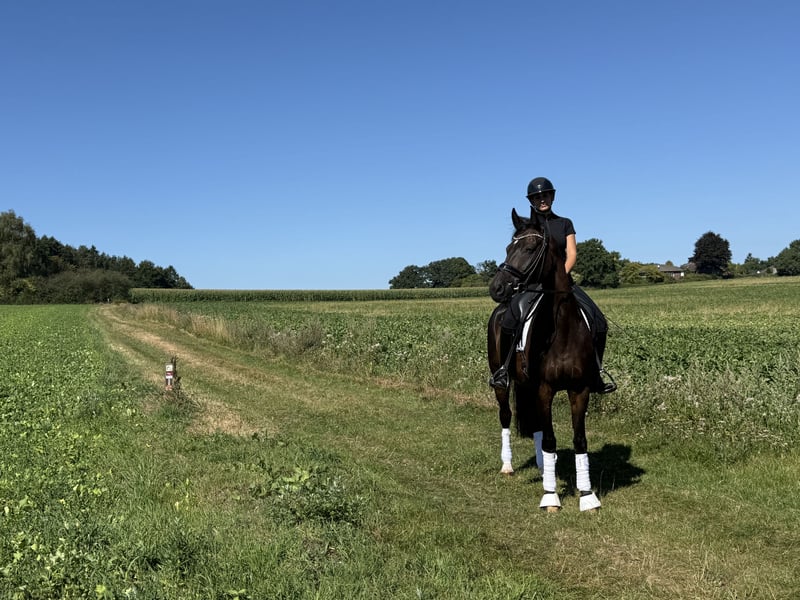 Nasz 16-letni wałach to wierny towarzysz i prawdziwa atrakcja. Posiada solidne podstawy szkoleniowe – pierwsze doświadczenia w ujeżdżeniu L oraz starty w zawodach do A** w skokach – ale teraz szukamy dla niego domu, w którym znajdzie swoje miejsce w rekreacji. W terenie jest niezawodny i spokojny, a podczas pracy z ziemi jest zmotywowany i zawsze chętnie współpracuje. Nie jest to koń tylko dla początkujących, jednak jest łatwy w obsłudze – z odrobiną doświadczenia i pewnością w siodle jeździ się nim bardzo przyjemnie. Szczególnie warto podkreślić, że dobrze radzi sobie z dziećmi i wykazuje się przyjaznym i zrównoważonym charakterem. Ponieważ jest dla nas prawdziwym koniem serca, oddajemy go wyłącznie osobom prywatnym. Naszym największym pragnieniem jest kochający dom, w którym będzie mógł pozostać na stałe i być w centrum uwagi jako partner do rekreacji. W przypadku zainteresowania czekam na krótką prezentację osoby.