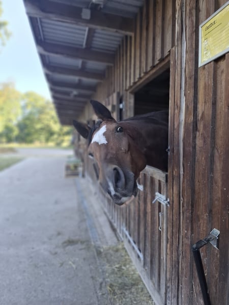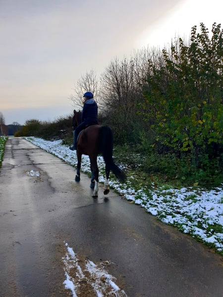 Collin ist ein bildhübscher 15-jähriger Hannoveraner Wallach, der mit Charme, Leichtrittigkeit und einem außergewöhnlich freundlichen Wesen überzeugt. Er ist ein echtes Seelenpferd, das seinem Reiter gefallen möchte. Collin eignet sich besonders für Jugendliche, aber auch feinfühlige Reiter mit Erfahrung und ist kein Anfängerpferd. Er ist sowohl in der Dressur als auch im Gelände zuverlässig und motiviert. In der Dressur ist er auf dem Weg zur Klasse M. Im Springen wurde er bis Klasse M** erfolgreich vorgestellt, soll jedoch aufgrund einer gesundheitlichen Schwachstelle im linken Hinterbein künftig nicht mehr im Springsport eingesetzt werden. Collin ist verkehrssicher sowie verlade- und schmiedefromm. Er zeigt sich sozial im Umgang mit anderen Pferden, sowohl im Stall als auch auf der Weide. 2024 wurde er als Lehrpferd für unsere 15-jährige Tochter gekauft und überzeugte direkt mit einer Turnierplatzierung In einer e Dressur mit einer 7,3.Da sie sich jedoch auf den Springsport konzentrieren möchte, wird für Collin nun ein liebevolles Zuhause ohne Leistungsdruck gesucht. Ein leichter Spattbefund aus dem Jahr 2021 sowie eine Auffaserung im linken Hinterbein (Befund November 2025) schränken ihn aktuell nicht im Dressur- oder Freizeitbereich ein. Daher wird er unter Wert abgegeben. Bei Interesse bitte telefonisch melden: 01520 1616776