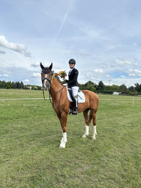 Due to a lack of time because of my studies, a truly lovable Hanoverian gelding, 17 years old, 1.70 m tall, in a stylish chestnut coat is for sale. ✅ Trained up to M** and placed in front, multiple M* wins, recently placed in L** ✅ Very well-behaved – easy to handle for children and teenagers ✅ Loadable & uncomplicated with the farrier ✅ Familiar with box and open stable conditions ✅ Fearless in the field – alone and in a group ✅ Extremely reliable in daily training Despite his age, he is still highly motivated, very rideable, and brings joy every day. He has findings that currently do not affect his use as a reliable leisure partner. (X-rays from 06/24 are available) He can teach a child or teenager a lot and offers a great opportunity to benefit from his training and experience. Smaller, adapted competition entries (lead rein, rider competition, E-A dressage) are still possible. Since he is practically "bombproof" in outside canters and has above-average good basic gaits, he would certainly not be uninteresting for the Children Tour with careful use. I am looking for a loving 5-star home for him with a permanent place, where he will be appreciated as a loyal leisure companion and will be a priority. Home before price! If needed, his two-year-old Devoucoux saddle (€3800) or other equipment can be purchased as well. If everything fits, I could possibly consider making him available in the nearby area.