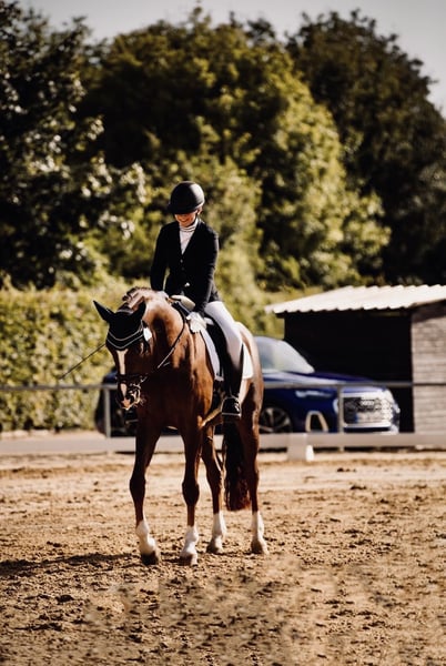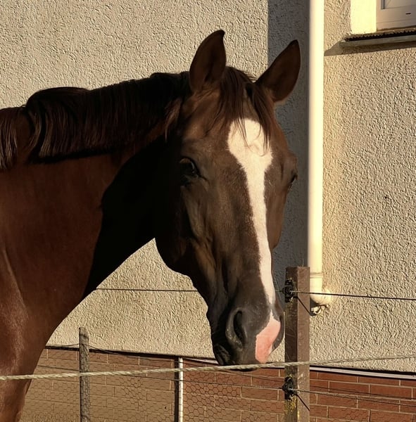 Schweren Herzens suche ich für meinen treuen und wundervollen Hannoveraner Wallach ein neues liebevolles Zuhause. Hermes ist ein echter Schatz – sanftmütig, mit dem Herz am rechten Fleck und einem Charakter aus Gold. Mit seiner „Kuschelnase“ begeistert er jeden, der ihn kennenlernt. Optisch ist er eine echte Schönheit: harmonischer Körperbau, edler Kopf mit wundervoller Blesse, sowie glänzendem dunklen Fell – Dunkelfuchs halt! Hermes hat seit seiner Geburt einen Ton, mit dem er super zurechtkommt und der ihn bislang nie große Probleme bereitet hat. Es äußert sich manchmal z.B. bei Wetterumschwung durch kurzzeitiges Husten. Aufgrund einer leichten altersbedingten Arthrose und seinem alter ist er perfekt als Freizeitpferd geeignet. Da er vom Kopf her aber noch ein junges Pferd ist, möchte er gern gefordert werden, denn nach wie vor zeigt er große Freude und Motivation an der Arbeit mit ihm. Er wird aktuell mehrmals die Woche geritten und wir gestalten seine Arbeit so abwechslungsreich wie nur möglich. Das bedeutet viele Ausritte im Gelände, Longieren, Bodenarbeit, lockeres Reiten und natürlich viel Liebe und Zuneigung. Springen oder zu belastende Aktivitäten sollten dennoch unterlassen werden. Mittlerweile ist er nun schon sieben Jahre bei uns. Hermes war ein aktives und erfolgreiches Dressurpferd. Mit seinen sicheren A/L Lektionen konnten wir uns über die Jahre auf zahlreichen Turnieren erfolgreich platzieren, bis hin zur Teilnahme an den Hessischen Meisterschaften im Vierkampf. Mit seinem Charakter aus Gold ist er im Umgang super pflegeleicht und sehr verträglich mit anderen Pferden. Aktuell steht er in einer Paddock-Box mit täglichem Weidegang von Frühjahr bis Herbst. Ich habe vor kurzem mein Studium begonnen und schaffe es leider nicht mehr ihm gerecht zu werden und genügend Zeit für ihn aufzubringen. Außerdem stellt sich ein geplanter Umzug mit Pferd leider extrem schwierig dar. Daher suche ich ab sofort ein neues Zuhause für ihn. Ich wünsche mir für sein neues Zuhause einen erfahrenen Reiter, der ihn mit täglicher Bewegung gesund erhält und ihm auch weiterhin ein liebevolles Zuhause bietet. Gerne mit viel Auslauf. Aus meiner Sicht ist er kein Kinder- oder Anfängerpferd. Ideal wäre jemand, der ein liebevolles Freizeitpferd für schöne Ausritte und harmonisches, gesundheitsorientiertes Reiten sucht. Als Freizeitpferd und zum Ausreiten ist Hermes ein wundervolles Tier. Beim Tierarzt ist er brav wie ein Lamm und in den Pferde-Anhänger geht er natürlich auch. Er ist regelmäßig geimpft und entwurmt, besitzt selbstverständlich einen Pferdepass und fortlaufenden Zahnpass. Sein komplettes Equipment (Sattel, Trense, Decken, …) kann gegen Aufpreis gern mit übernommen werden. Platz vor Preis! Hermes liegt mir sehr am Herzen. Ich wünsche mir für ihn ein dauerhaftes, wertschätzendes Zuhause. Bei ernsthaftem Interesse freue ich mich über eine Nachricht und ein persönliches Kennenlernen. Der Preis ist OHNE Transport!!