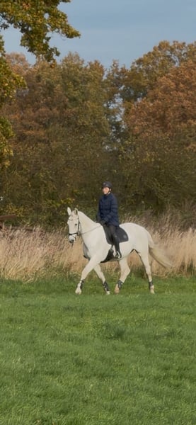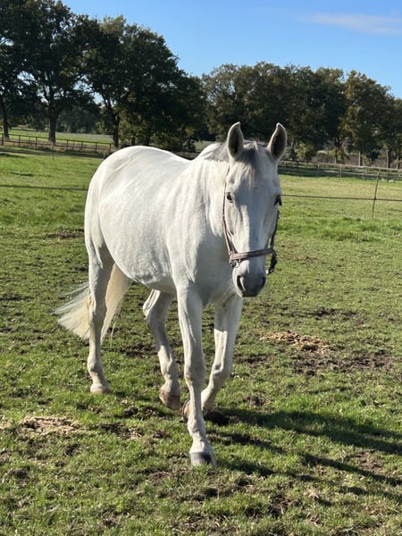Unfortunately, I am selling my 18-year-old grey gelding here due to lack of time. He deserves a caring home with gentle exercise or hacking, or as a companion horse. He is farrier- and loading-wise calm, teeth recently floated, regularly dewormed, vaccinated. Front shoes are fitted. He receives physiotherapy treatments periodically. He is sensitive to sugar. He has been well-trained in dressage and is comfortable riding alone in the field. Gentle and suitable for an experienced rider. He is compatible with other horses and has been kept both in mixed herds and with mares or geldings. I am looking for a loving home with plenty of turnout in a small herd for life. Priority goes to the well-being of the horse over price. More information available upon request. No dealers or riding schools, please.