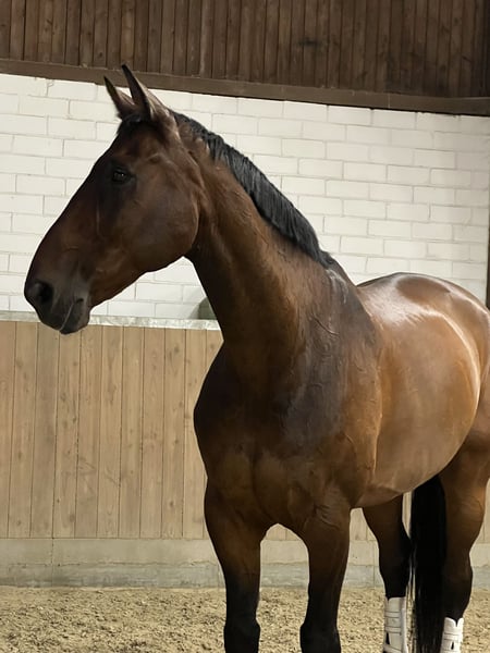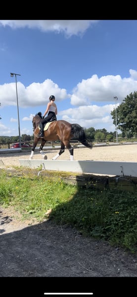 Bonjour, je m’appelle Laura et je souhaite proposer mon hongre Duke, avec une possibilité de reprise, à la vente. Il est vraiment tout pour moi ! Actuellement, il m’est cependant très difficile de tout gérer seule, tant sur le plan financier qu’au niveau du temps, car je suis encore étudiante. Comme mes études dureront encore un certain temps, je dois malheureusement reconnaître que je ne peux plus assumer cette charge à long terme. Il se trouve actuellement à Dansweiler (près de Pulheim). C’est un hongre hanovrien de 1,80 m, âgé de 17 ans, souffrant de processus de kissing spines (qui peuvent être bien gérés grâce à une monte saine, sans trop limiter ses capacités). Il possède un cœur énorme. Tous ceux qui le connaissent le décrivent comme le cheval le plus affectueux et le plus câlin qu’ils aient rencontré. En octobre 2025, il a commencé à boiter, la cause étant une inflammation de l’articulation du pied. Depuis mi-janvier, je peux à nouveau le remettre en entraînement, et nous avançons bien, mais cela demande évidemment du temps. Il est très calme et patient, et il aime quand il peut trotter un peu. Il est très ouvert à tout. Je le monte principalement en dressage détendu, et j’aimais beaucoup faire du cavaletti ou de petits sauts avec lui, mais cela n’est plus possible à cause de son articulation du pied. Je faisais souvent de petites randonnées en solo avec lui. Il est un peu craintif, il sursaute parfois, mais il continue simplement son chemin sans jamais être agressif ou impulsif. Il veille toujours sur son cavalier à 100 % ! En raison de ses antécédents avec l’articulation du pied, il est très important pour moi qu’il reçoive un ferrure spécialisée. Prendre la décision de le confier est extrêmement difficile pour moi, c’est pourquoi je cherche quelqu’un qui l’aimera au moins autant que moi :)