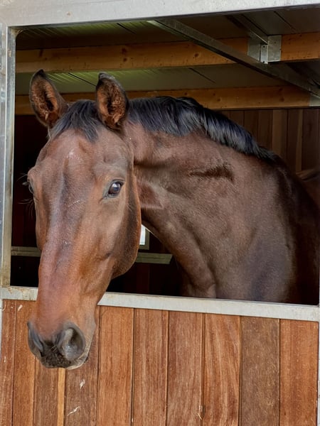 Hello, my name is Laura, and I would like to offer my gelding Duke for adoption, with the possibility of taking over his care. He truly means the world to me! However, due to my current financial situation and time constraints as a student, I am finding it very difficult to manage everything alone. Since my studies will still take some time, I have to admit that I can no longer bear this burden in the long term. At the moment, he is located in Dansweiler (near Pulheim). He is a 17-year-old Hanoverian gelding, standing at 1.80 meters, with kissing spines (which are well-managed through healthy riding and do not significantly limit him) and an absolutely enormous heart. Everyone who knows him describes him as the most affectionate and cuddly horse they have ever met. In October 2025, he started to limp, and the cause was an inflammation of the hoof joint. Since mid-January, I have been able to begin retraining him, and we are making good progress, but of course, this takes time. He is very well-behaved and patient, and he enjoys a bit of trotting. He is very open to new experiences. I mainly ride him in relaxed dressage and used to enjoy doing cavaletti and small jumps with him, but this is no longer possible due to his hoof joint issues. I often went on solo rides with him. He can be a bit spooky, sometimes flinches, but then simply continues normally without any malicious or reckless behavior. He is always very attentive and caring—100%! Due to his history with the hoof joint, it is very important to me that he receives a special shoeing. Deciding to give him up is extremely difficult for me, which is why I am looking for someone who loves him at least as much as I do. :)