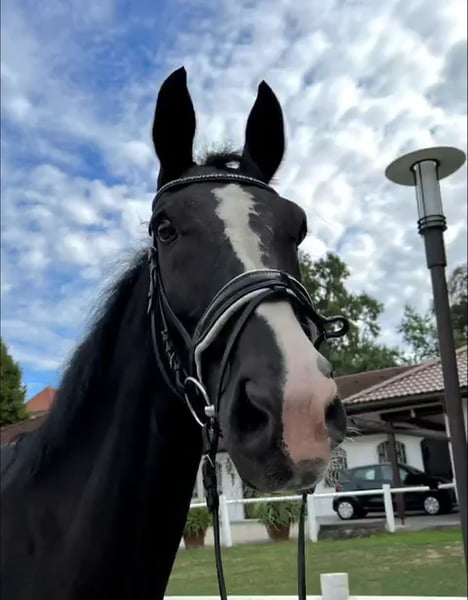 Toller Hannoveraner Wallach, 19 Jahre alt, ca. 1,77 m groß, mit sehr angenehmem Wesen. Er ist in allen Grundgangarten sicher zu reiten und zeigt sich zuverlässig und brav. Charakterlich überzeugt er durch seinen tollen, ehrlichen Charakter. Anfangs kann er etwas misstrauisch sein, doch sobald er Vertrauen gefasst hat, ist er ein absoluter Kumpeltyp. Im Umgang ist er unkompliziert und rangniedrig. Er ist brav beim Schmied und gut zu verladen. Probereiten wird mit 25 € berechnet und beim Kauf vollständig angerechnet. Abgabe nur in gute und erfahrene Hände. Er hat Magengeschwüre ist in Behandlung