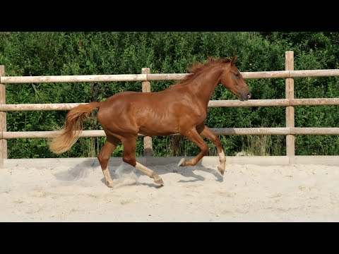Hongre Mecklenburg alezan de 2 ans, toisant déjà 1,65 m et destiné à dépasser les 1,75 m, se distingue par son modèle élégant, son mental facile et ses allures amples et expressives. Issu d’un croisement porteur (Vidar x Cecotto’s As), il bénéficie d’une solide génétique pour le dressage. Très gentil, bien éduqué, élevé en troupeau et parfaitement manipulé, il voyage bien et présente un comportement exemplaire au quotidien. Un jeune cheval prometteur, idéal pour un cavalier ou un investisseur recherchant un futur partenaire solide, bien dans sa tête et doté de véritables aptitudes sportives.