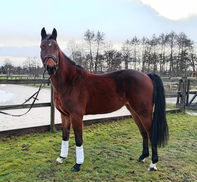 This three-year-old gelding, Cello, is a dark bay with his pedigree tracing back to Casino Grande, bred by the Sosath family. His sire, Casino Grande, impresses in his work through his rideability, attitude, and quality of movement. He has achieved success in show jumping up to 1.55 m, including placements at the German Championships in Balve and the World Cup tournament in Leipzig, as well as other international competitions over 1.55 m. Casino Grande has numerous successful offspring, including the winning mare of the mare performance test in Rastede, the Oldenburg regional champion of show jumping horses, and licensed stallions from the licensing in Munich, among others. Many of his progeny compete successfully in S-level show jumping (over 1.40 m). The dam line extends through Viscount and Argentinus. Viscount was successful in both dressage and show jumping at S-level. His offspring are also competing in S-level dressage and jumping tests, demonstrating his rideability and willingness to perform in his genetics. Argentinus himself has over 100 licensed sons and has become a legend in show jumping, making a significant mark in the sport. Born in March 2023, Cello was raised in a family environment and is currently undergoing gentle training. He is very eager to learn, listens well, and always strives to do his best. He is willingly saddled and bridled and is familiar with lunging in all three basic gaits. Additionally, he already knows ground work with poles. He is farrier- and vet-friendly. The next steps in his training include free jumping and carrying rider weight. Cello has a solid foundation and a very compact build. He currently measures approximately 16.2 hh. The horse is located in Oyten. Viewings are possible at any time by arrangement. The horse is being offered due to the owner's retirement from riding.