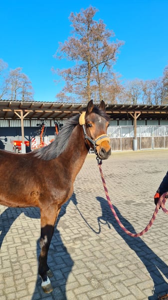 Este es Cello, un potro de tres años de edad, de color castaño, hijo de Casino Grande, criado por la familia Sosath. Su padre, Casino Grande, destaca por su carácter confiado, su actitud y su calidad de movimiento. Ha obtenido buenos resultados en concursos de 1,55 m, como en el Campeonato Alemán en Balve o en la Copa del Mundo en Leipzig, además de otros concursos internacionales por encima de 1,55 m. Casino Grande ya ha tenido numerosos descendientes exitosos, entre ellos la yegua ganadora en la exposición de yeguas en Rastede, la campeona regional de Oldenburg en salto y varios sementales aprobados en München, además de otros caballos aprobados. Muchos de sus hijos compiten con éxito en la categoría S (sobre 1,40 m). La línea materna desciende de Viscount y Argentinus. Viscount fue un destacado competidor en salto y doma en la categoría S. Sus descendientes también participan en pruebas de S en doma y salto, lo que confirma su carácter confiado y su disposición a rendir en su herencia. Argentinus, por su parte, cuenta con más de 100 hijos aprobados y no solo se ha hecho un nombre, sino que se ha convertido en una leyenda en el mundo del salto. Cello nació en marzo de 2023, ha sido criado en un entorno familiar y actualmente se encuentra en una fase suave de su entrenamiento. Es muy receptivo, presta atención y siempre quiere dar lo mejor de sí. Se deja montar y bridar con facilidad y conoce el trabajo en línea en las tres fases básicas del movimiento. Además, ya está familiarizado con el trabajo en tierra con barras. Es respetuoso con las herraduras y con el veterinario. Los próximos pasos en su formación incluyen el salto en libertad y la aceptación del peso del jinete. Cello tiene una buena base y está construido de forma muy compacta. Actualmente mide aproximadamente 1,62 m de altura. El caballo se encuentra en Oyten. Puede ser visitado en cualquier momento previa cita. Se ofrece este ejemplar por motivos de cese en la práctica deportiva.