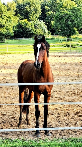 Ich verkaufe aufgrund von Bestandsreduzierung meinen selbstgezogenen jungen Wallach vom Uno I x Advance. Uwe ist der wahrgewordene Mädchentraum! Er ist bildschön, hat einen Charakter aus Gold und zudem bewegt er sich in allen drei GGA super locker, mit großer Übersetzung und schön taktischer. Er macht einen tollen Freisprung und zeigt hier viel Mut und Vermögen mit der nötigen Vorsicht. Uwe hat in seinem Leben noch nichts schlechtes erlebt, ist aber natürlich trotzdem gut erzogen. Er geht überall, auch an neues, mit einer großen Selbstverständlichkeit und Neugier heran und zeigte sich dabei bisher immer unerschrocken und kopfklar. Er ist natürlich schmiede- und verladefromm, Beine abwaschen, mit mehreren Pferden gleichzeitig zur Weide bringen, Kurzum sämtliche Alltagsbereiche kennt und meistert er wie ein alter Hase. Uwe steht reiterlich aufgrund seines Alters am Anfang seiner Ausbildung. Er wurde im Sommer kurz angeritten und danach wieder auf die Weide entlassen. Seit November ist er nun 3x die Woche in Arbeit und entwickelt sich wirklich toll!! Natürlich klappt noch nicht alles perfekt, aber er bemüht sich sehr und das immer mit einer totalen Leichtigkeit. Er wird von einer jungen Dame ausgebildet und konnte direkt vernünftig von einem 11-jährigen Mädchen nachgeritten werden. Trotz seines tollen und einwandfreien Charakters ist er aufgrund des Alters und des Ausbildungsstandes kein reines Anfängerpferd. Er wird nur in fördernde Hände mit Sachverstand verkauft. Kein Notverkauf! Das Pferd liegt mir wirklich am Herzen und ich möchte, dass sowohl die neuen Besitzer als auch Uwe ein "Perfect Match" bekommen! Zweijährig habe ich einen Züchtertüv machen lassen inkl. Rücken obB.