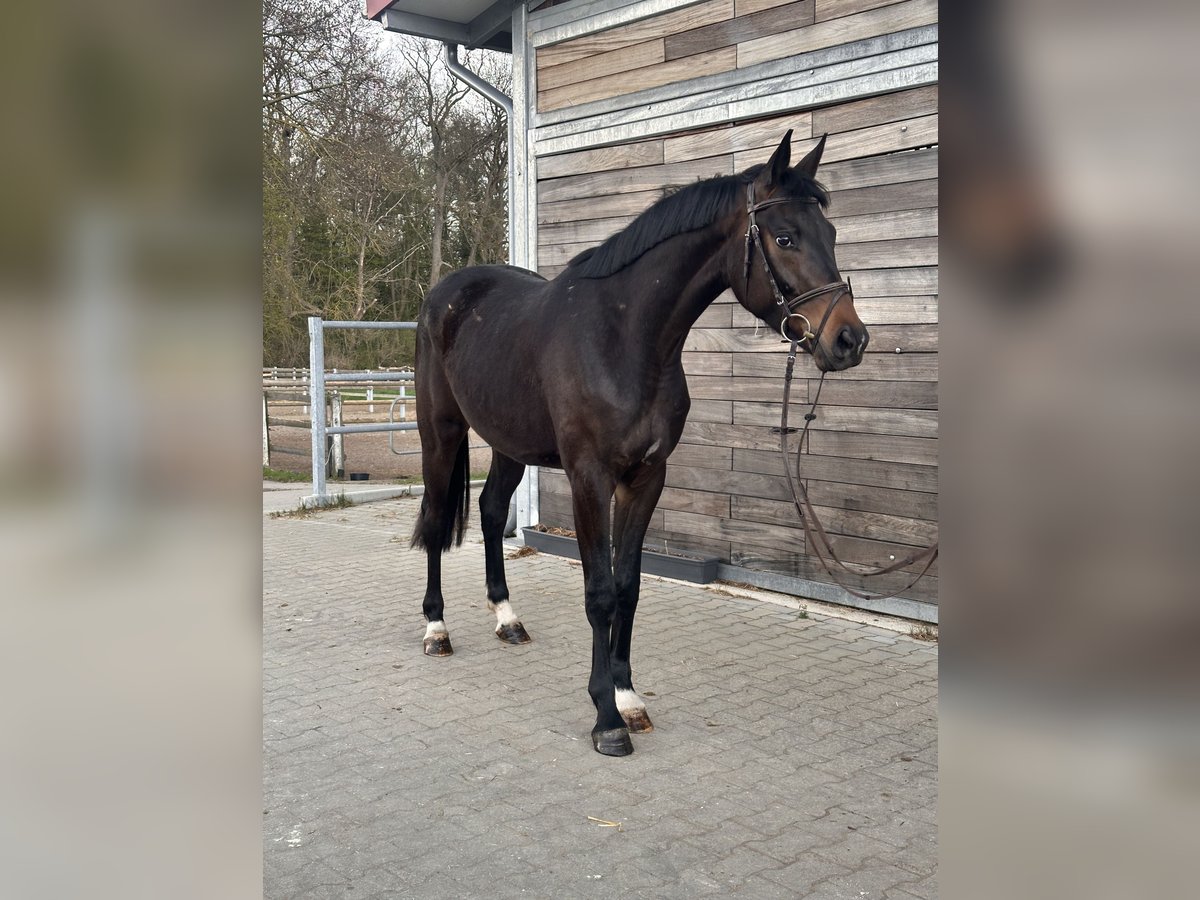 Gelding con chaqueta oscura para todas las disciplinas