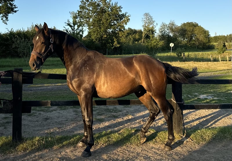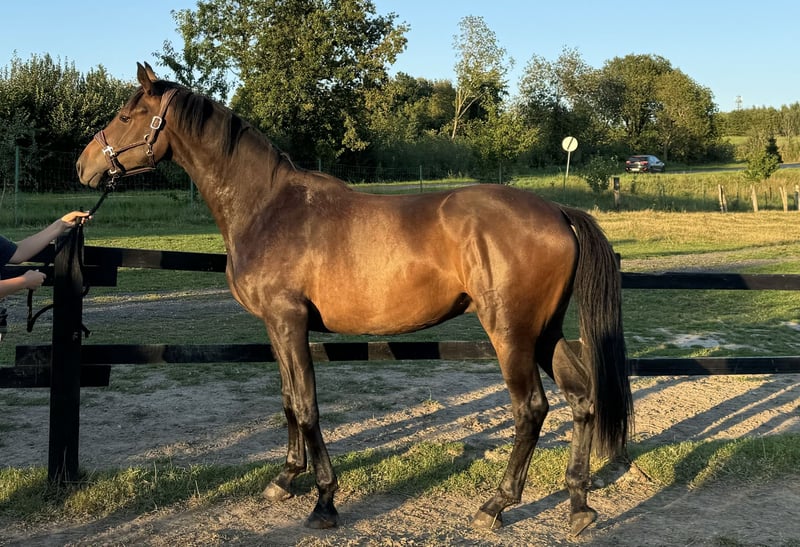 I am offering for sale a gelding named Stakkaleo OR, born in 2023, with a height of approximately 167 cm. He is an extremely elegant, long-legged horse with a harmonious build, straight on his legs, balanced in proportions, and stable in character – he already presents himself as a horse destined for great sport. His sire is Stakkato – a phenomenal Hanoverian stallion, a true breeding and sporting legend, a long-time leader in the WBFSH world rankings, whose offspring have triumphed on the biggest show jumping stages in the world. Stakkato is renowned not only for his own sporting achievements (show jumping up to 160 cm) but primarily for his immense hereditary strength – he has produced countless Grand Prix horses, passing on exceptional jumping technique, reflexes, strong take-off, and a reliable character. This stallion has forever marked his place in the history of show jumping breeding, creating a line recognized worldwide. On the dam's side, Stakkaleo OR inherits the genes of the stallion Grupo Prom Numerus (son of Numero Uno) who competes up to 145 cm, as well as the stallion Vandamme (1.50 m), which further enhances the sporting potential of this young horse. The maternal line brings strength, health, and endurance, making Leoś embody the most valuable traits in breeding – a modern type, excellent conformation, outstanding pedigree, and great character. Stakkaleo OR is a young horse with a future, distinguished by elegance, nobility, and lightness in movement. His lineage and predispositions make him an excellent candidate for further sporting training and an investment that will surely pay off. I am offering for sale a beautiful Hanoverian horse: - **Type:** Gelding - **Year of Birth:** 2023 - **Color:** Bay - **Height:** 167 cm - **Use:** Show Jumping A horse with a wonderful temperament, ideal for those looking for a companion for jumping. He stands out not only for his excellent predispositions but also for his friendly disposition. He is well-socialized and has a positive attitude towards work. Feel free to contact me for more information and to arrange a meeting. Don't miss the opportunity to become the owner of this exceptional horse!