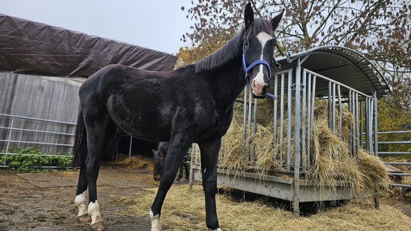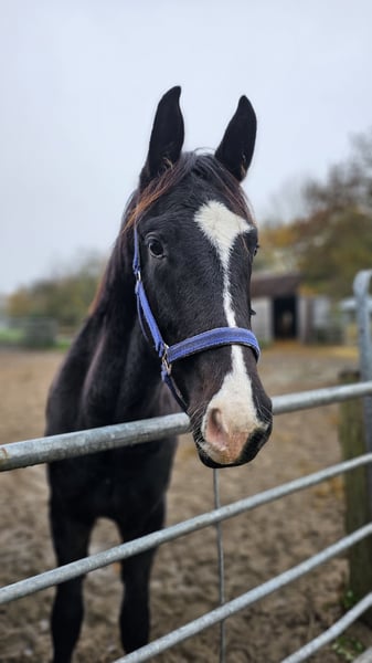 Ausdrucksstarker Rappwallach mit Blässe, sehr guter Schritt. K.C. Let’s Dance von Lord Europe aus der K.C. Glanz und Gloria von Grey Flanellx Sarkozy. Geb. 02.03.2022. Vor. Endmass 168 cm. Dressurbetont. Korrekter Körperbau, gute Grundgangarten, sehr guter Schritt, sehr schöner, edler Kopf. Seine Grundgangarten, Haltung und Ausdruck zeigen seinen Weg ins große Viereck. Seine Mutter Glanz undGloria ist ebenfalls ein bildschöner Rappe mit ausgezeichneten Grundgangarten.