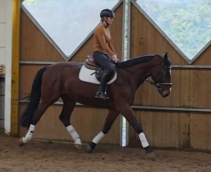 Tarok ist ein hübscher und ausgesprochen lieber Partner für Dressur, Freizeit und mehr. Für sein Alter ist er unglaublich cool und unerschrocken. Tarok hat eine sehr gute Dressurabstammung und durchaus tolle Bewegungen. Er lässt sich leicht an den Zügel stellen und vermittelt dem Reiter ein gutes und sehr sicheres Gefühl. Er lässt sich in den 3 Grundgangarten ordentlich reiten, absolviert erste kleine Sprünge unter dem Reiter und geht unerschrocken ins Gelände, sowohl in der Gruppe, als auch allein. Bei weiterer Förderung wäre Tarok sicher auf Turnieren erfolgreich. Aufgrund seines tollen Charakters verspricht er aber auch ein sehr zuverlässiges Freizeitpferd zu werden. Verladen, Hufschmied, Duschen... alles kein Problem. Auch mit anderen Pferden verträgt er sich gut. Er steht hier nachts in der Box und tagsüber in der Wallachgruppe auf dem Paddock. Tarok kennt aber auch reine Weidehaltung und würde sich sicher auch im Offenstall wohlfühlen. Ein Pferd, das einfach ein 5* Zuhause verdient hat. Übrigens lief er gerade super abgeklärt die Dressurquadrille beim Weihnachtsreiten mit Fast 4j Hann Wallach 1.69m Klinische Aku vorhanden Video: https://youtu.be/6LJSjibol3M?si=1GUdZI4462Sh2bhD Noch mehr Fotos, Videos und kleine Einblicke in den Alltag unserer Pferde gibt’s auf Instagram: [maresi_lange]. Schauen Sie gern vorbei und lernen Sie unsere Vierbeiner schon vorab ein bisschen kennen. You can find more photos, videos and little insights into the everyday life of our horses on Instagram: [maresi_lange]. Feel free to take a look and get to know our horses a bit better in advance.“ Weitere Pferde auf meiner Homepage MaresiLange.de oder auf Anfrage. Die Beschreibung des Pferdes beruht auf subjektiven Eindrücken und Erfahrungen unsererseits und ist keine Beschaffenheitsvereinbarung und Zusicherung von Eigenschaften. Probereiten erfolgt auf eigene Gefahr. Verkauf erfolgt im Auftrag. Für das Vorstellen/ Probereiten des Pferdes erlauben wir uns eine Aufwandsentschädigung in Höhe von 30 Euro zu berechnen. Diese wird natürlich bei Kauf des Pferdes verrechnet.