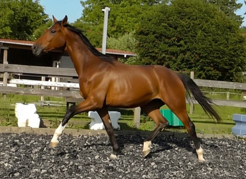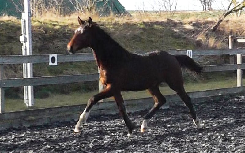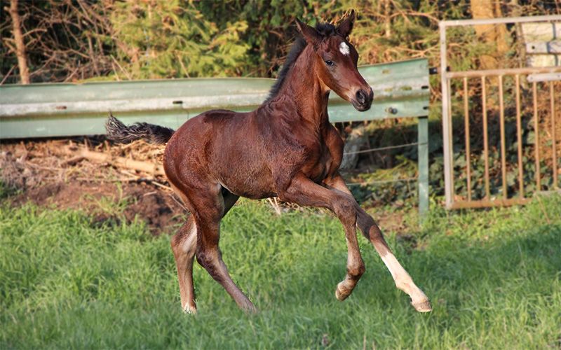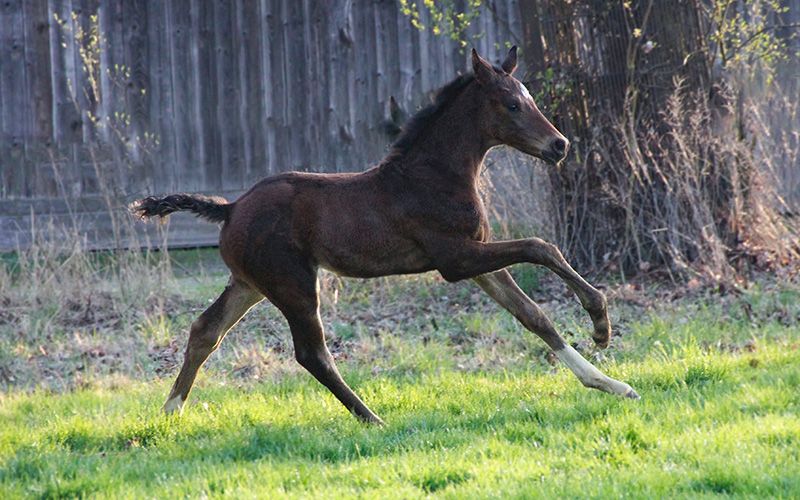 Schoko Santini es un potro de tipo equilibrado, que se mueve con mucha energía y buena musculatura. Desde potro, se destaca por su elegante estructura en línea recta, con una magnífica línea superior. Muestra tres excelentes movimientos básicos y sabe presentarse con gracia, siendo además muy sociable y cariñoso con las personas. En la exposición de potros en el marco del torneo de doma en Park – Turnier Nörten-Hardenberg, logró el segundo puesto. Schoko crece en un entorno familiar. Para él, es natural acudir regularmente al herrador, ser desparasitad, recibir educación de potro, pastar en manada, y disfrutar de luz, aire y movimiento. También se realiza un desmote suave, un trato respetuoso con el caballo y una educación de potro basada en principios sostenibles. El año pasado, pudo disfrutar del pasto en la pradera de sementales, donde aprendió y dominó perfectamente el transporte en remolque. Según la medida Zigeunermaß, Schoki superará claramente los 1,70 m… aunque sin garantía, por supuesto. Segantini, de Secret, proveniente de una yegua Fidermark, es un hermoso semental, con una estructura magnífica en línea recta y dotado de mucha cadencia natural. Fue semental premiado en la selección de Hannover, ganador de su prueba de rendimiento en Adelheidsdorf con una nota global de 9,03 (máximo en disposición de 10) y campeón nacional de los caballos de cuatro años en 2022. Para la facilidad de monta, obtuvo la máxima nota de 10, y en todos los demás criterios, puntuaciones de 9,0 en promedio. En total, 9,2. Desde 2024, Segantini está siendo preparado por Dorothee Schneider para el gran circuito de doma clásica. La madre, Doriana, presenta tres excelentes movimientos básicos, con mucho impulso desde la parte trasera. Desde su nacimiento, se muestra siempre compacta y con una excelente colocación bajo la carga. Doriana tiene un excelente impulso hacia adelante, es segura de sí misma y sensible (pero sin ser nerviosa). Completó su prueba de rendimiento de yeguas como la quinta mejor, con una nota global de 7,5. El padre de Dorian, D-Online de De Niro, fue exitoso en Intermediaire I y es hermano completo de Dablino FRH, de Anabell Balkenhol, con quien participó en campeonatos mundiales y Juegos Olímpicos. Por parte materna, desciende a través de Amie Petite de la yegua de sangre caliente Tulipe, y en la cuarta generación, de la yegua Adlerbraut v. Adlersturm, que fue ganadora en la exhibición de elites de la DLG en 1984, y de la yegua de premios estatales Hessenperle, hasta la yegua madre Mandarine (Holst Stamm 5191).