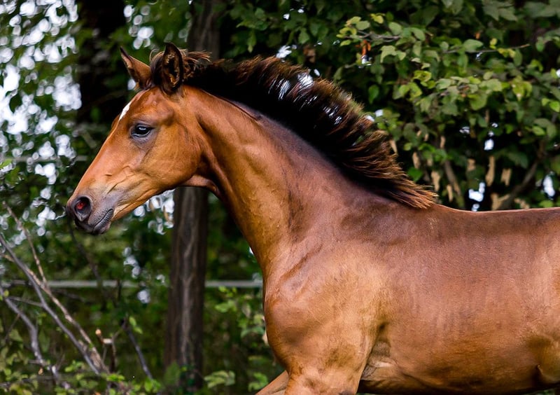 Schoko Santini est un hongre typé, qui sait se déplacer avec beaucoup d'amplitude et de manière fluide. Déjà en tant que poulain, il se distinguait par sa belle construction en montée avec une magnifique ligne supérieure. Schoki montre trois très bonnes allures de base et sait se présenter, tout en étant très attaché aux humains et câlin. Lors de la présentation des poulains dans le cadre du concours Dressage im Park à Nörten-Hardenberg, il a obtenu la 2ème place. Schoki grandit en contact avec la famille. Des présentations régulières chez le maréchal-ferrant et des vermifuges, l'éducation des poulains, le pâturage en groupe, la lumière, l'air et le mouvement sont pour nous une évidence. De même, un sevrage doux, un traitement respectueux des chevaux et une éducation durable des poulains. L'année dernière, il a pu profiter du pré des étalons, où il a également appris à voyager en van de manière excellente. Selon la mesure des gitans, Schoki dépasse clairement 170 cm... sans garantie, bien sûr. Segantini, fils de Secret et d'une mère Fidermark, est un magnifique étalon, merveilleusement construit en montée et doté d'une grande cadence naturelle. Il a été étalon primé lors de la sélection des hanovriens, vainqueur de sa HLP à Adelheidsdorf avec une note globale de 9,03 (disposition au travail 10) et champion des étalons de quatre ans au Bundeschampionat 2022. Pour sa montabilité, il a reçu la note maximale de 10, et pour tous les autres critères, une note de 9,0. Note globale 9,2. Depuis 2024, Segantini est préparé par Dorothee Schneider pour le grand rectangle. La mère Doriana possède trois très bonnes allures de base, avec beaucoup de propulsion venant de l'arrière. De nature, elle se montre toujours fermée et pose fantastiquement sous le centre de gravité. Doriana a un excellent élan vers l'avant, elle est confiante et sensible (mais pas regardante). Elle a terminé sa performance de jument comme cinquième avec une note globale de 7,5. Le père de Doriana, D-Online par De Niro, a été performant jusqu'à Intermédiaire I et est le plein frère de Dablino FRH, monté par Anabell Balkenhol lors des championnats du monde et des Jeux Olympiques. Par la lignée maternelle, on remonte à Amie Petite sur la jument demi-sang Tulipe et plus loin, en quatrième génération, à Adlerbraut par Adlersturm, qui a été la gagnante de l'exposition d'élite lors de la DLG en 1984, passant par la jument d'État Hessenperle, jusqu'à la jument de base Mandarine (Holst Stamm 5191).