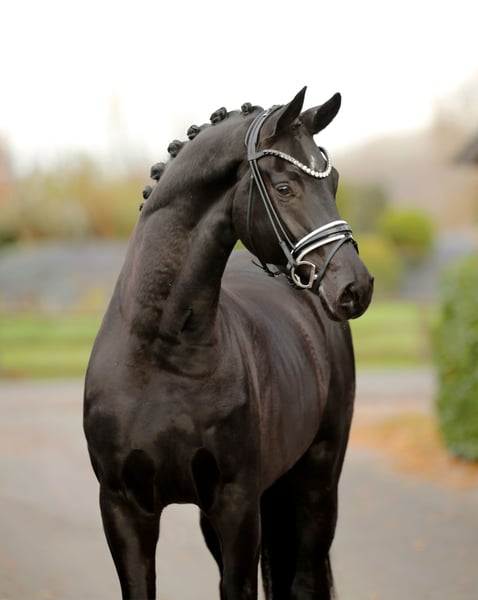 Jet black beauty with stunning presentation and impressive appearance! A solid and gently started young horse with a gold-hearted character, possessing "must-have" charm and equally excellent training potential. Always striving to do everything right and to please, while remaining honest, sincere, and eager to learn. Not only a visual dream horse and an unparalleled eye-catcher for special occasions, but also a lovable young colt at heart—searching for the perfect home. Top inspection, shipping available upon request.