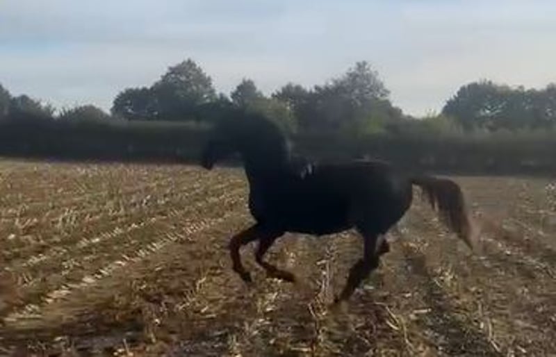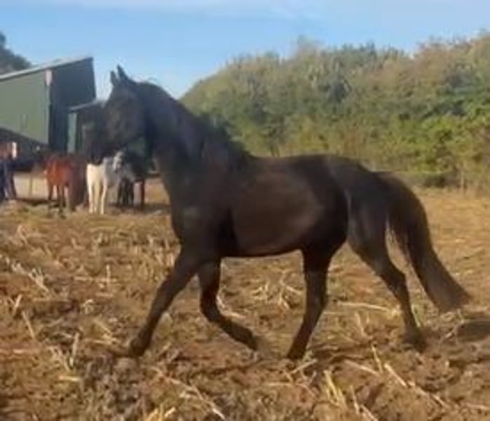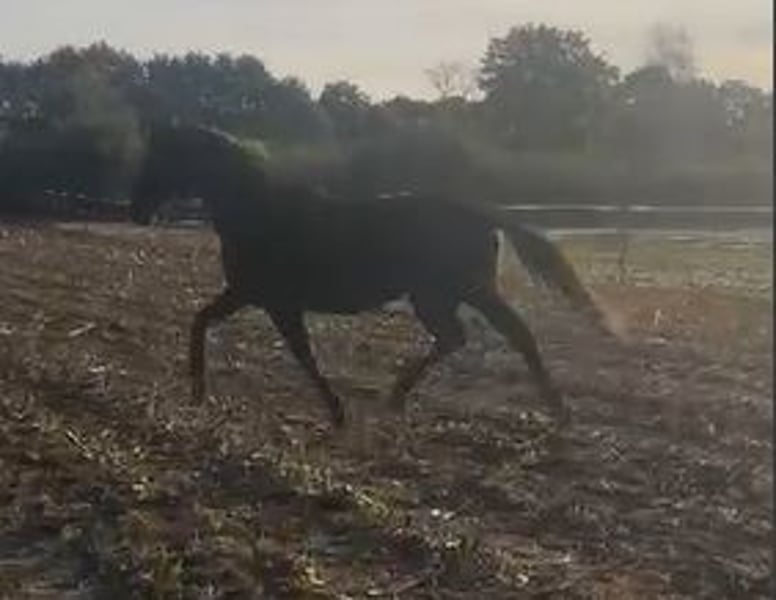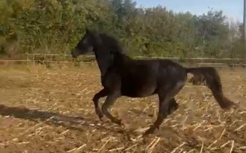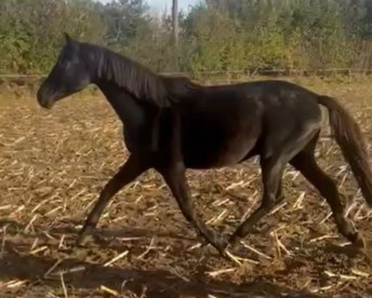 Wegen Bestandsverkleinerung sucht dieser talentierte Wallach einen neuen Besitzer. Direkt vom Züchter. Alter 3 Jahre, Farbe Rappe, roh. Hamilton verfügt über 3 sehr gute Grundgandarten mit einem unerschütterlichem Takt. Er ist dressurmäßig gezogen, zeigt aber auch Talent fürs Springen. Deshalb kann ich ihn mir auch gut in der Vielseitigkeit vorstellen. Die Mutter (mit Vollblutanteil) ist sehr rittig und mit guten Grundgangarten ausgestattet und ebenfalls talentiert am Sprung. Sie hat ein Stockmaß von 1,70 m. Die letzten 2 Fotos zeigen die Mutterstute im Alter von 4 Jahren. Sie ist die Halbschwester von Albi Pedrams Hidalgo (S-Dressur erfolgreich) - beide stammen aus der gleichen Mutterstute. Der Vater von Hamilton ist Helium (Stockmaß 1,72 m ) - ein sehr erfolgreicher Trakehner Hengst, der auch auf S-Niveau unterwegs ist. Ein 4-jähriger Vollbruder kann ebenfalls besichtigt werden. Er ist schon angeritten und zeigt sich unter dem Sattel absolut unkompliziert, sehr rittig mit ebenfalls sehr guten und besonders schwungvollen Gangarten und Springtalent. Eine Ankaufsuntersuchung wurde bisher, da er bei uns geboren wurde, noch nicht gemacht. In den 3 Jahren war er nie krank oder lahm. Hamilton ist mit einer Gruppe gleichaltriger Wallache aufgewachsen. Er ist eher rangniedrig und zettelt keinen Streit an. Hamilton steht noch bis zum Frühjahr in der Herde und soll dann eingeritten werden. Der Verkaufspreis wird dann entsprechend angepaßt. Ein früheres Einreiten wäre ebenso möglich. Wenn ihr Interesse habt, meldet euch gern per Whats app 0172 1857496. Liebe Grüße